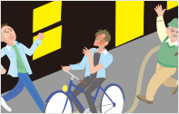 自行车如果跌倒就会受伤。尽量避免露出皮肤,戴安全帽、手套等。