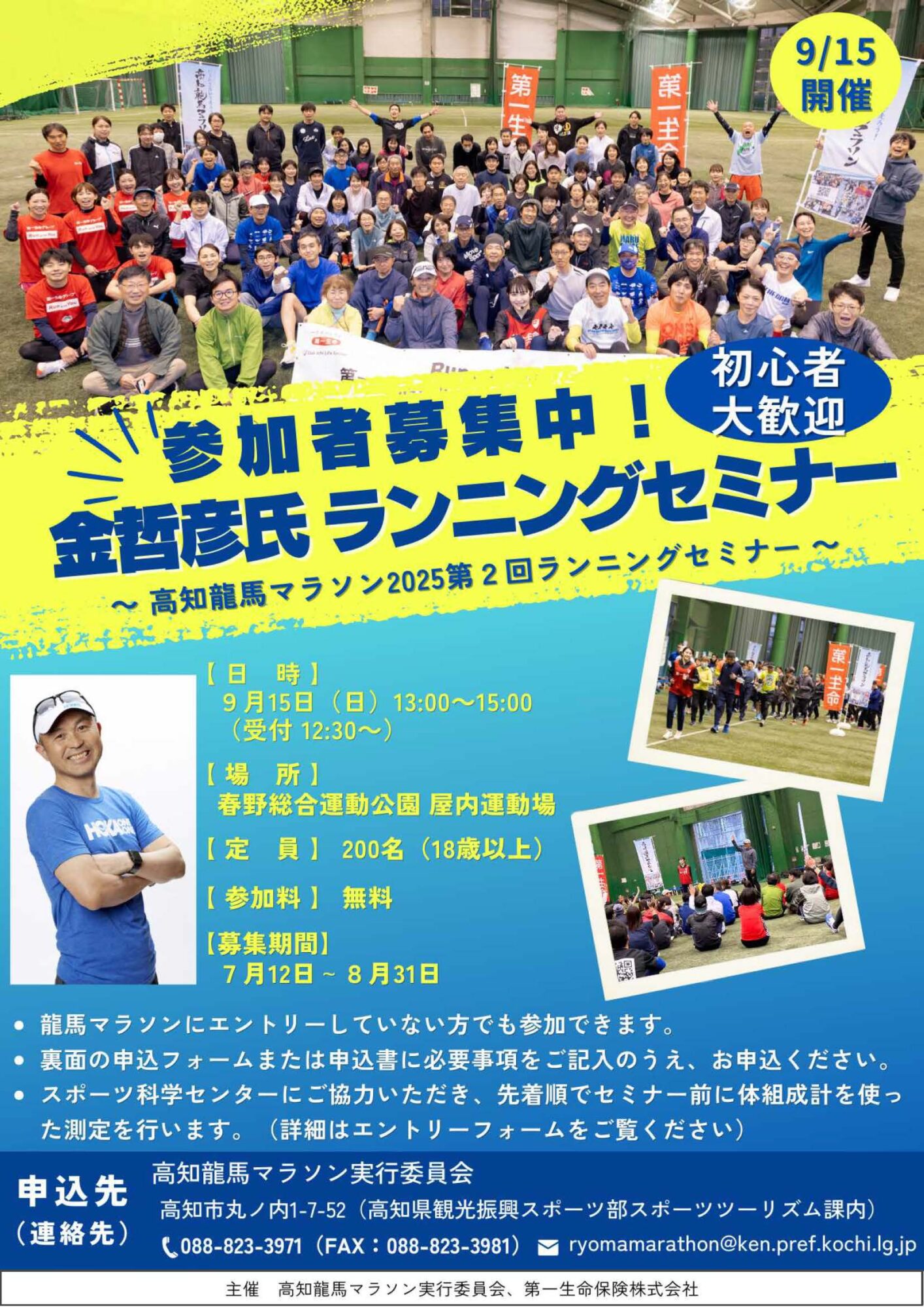 以高知龙马马拉松2025大会顾问金哲彦为首,高知县出身的原丰田汽车长距离部所属的松本稜、在本县持续进行集训的托内克田径部、在2024箱根接力赛中获得综合优胜的青山学院大学田径部等将担任。第二届讲师是金哲彦。