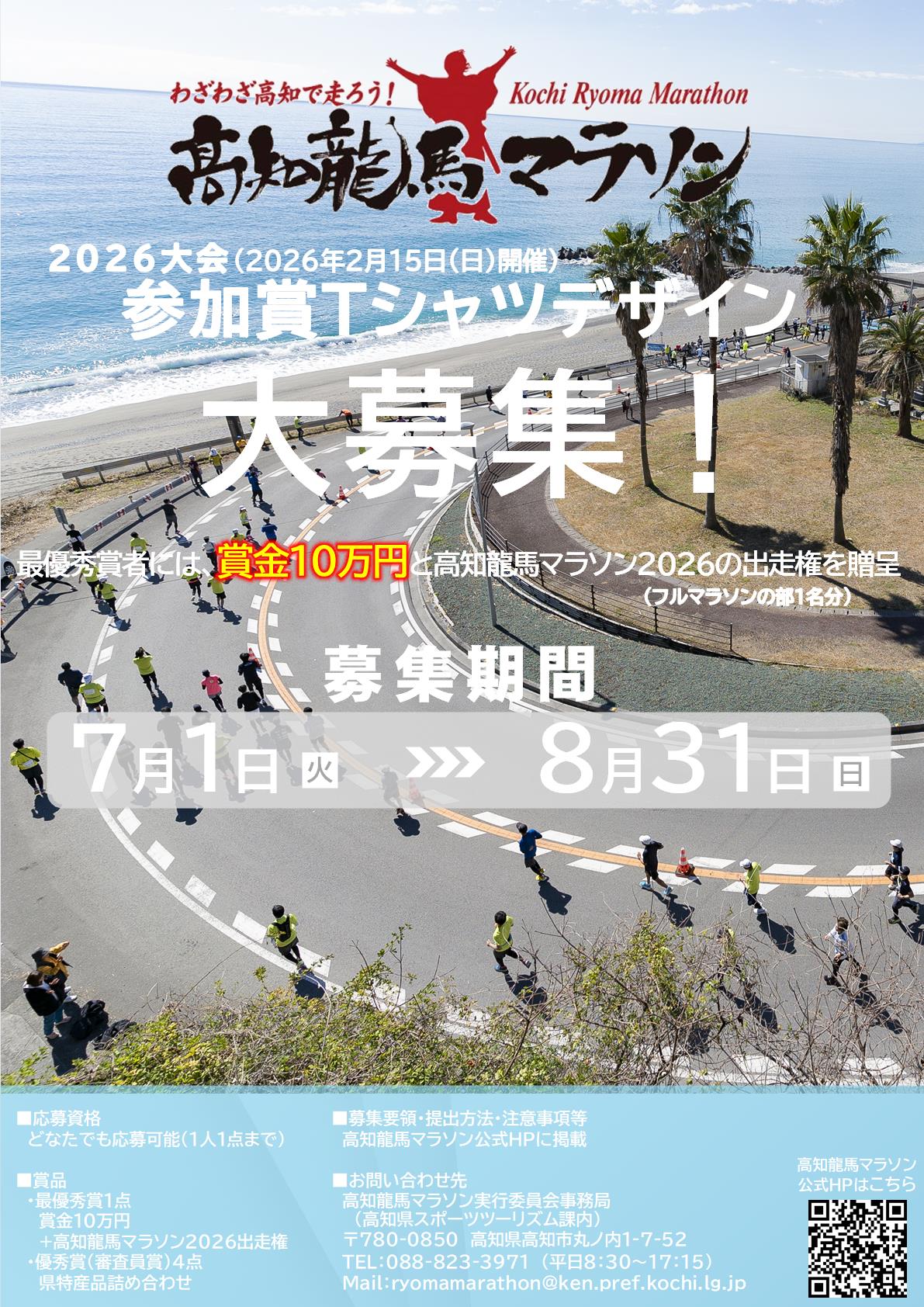 为了和大家一起炒热高知龙马马拉松2026年的气氛,募集大会参加奖的T恤设计。