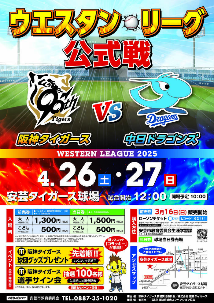 职业棒球西部联盟正式比赛“阪神老虎VS中日龙队”战即将举行。