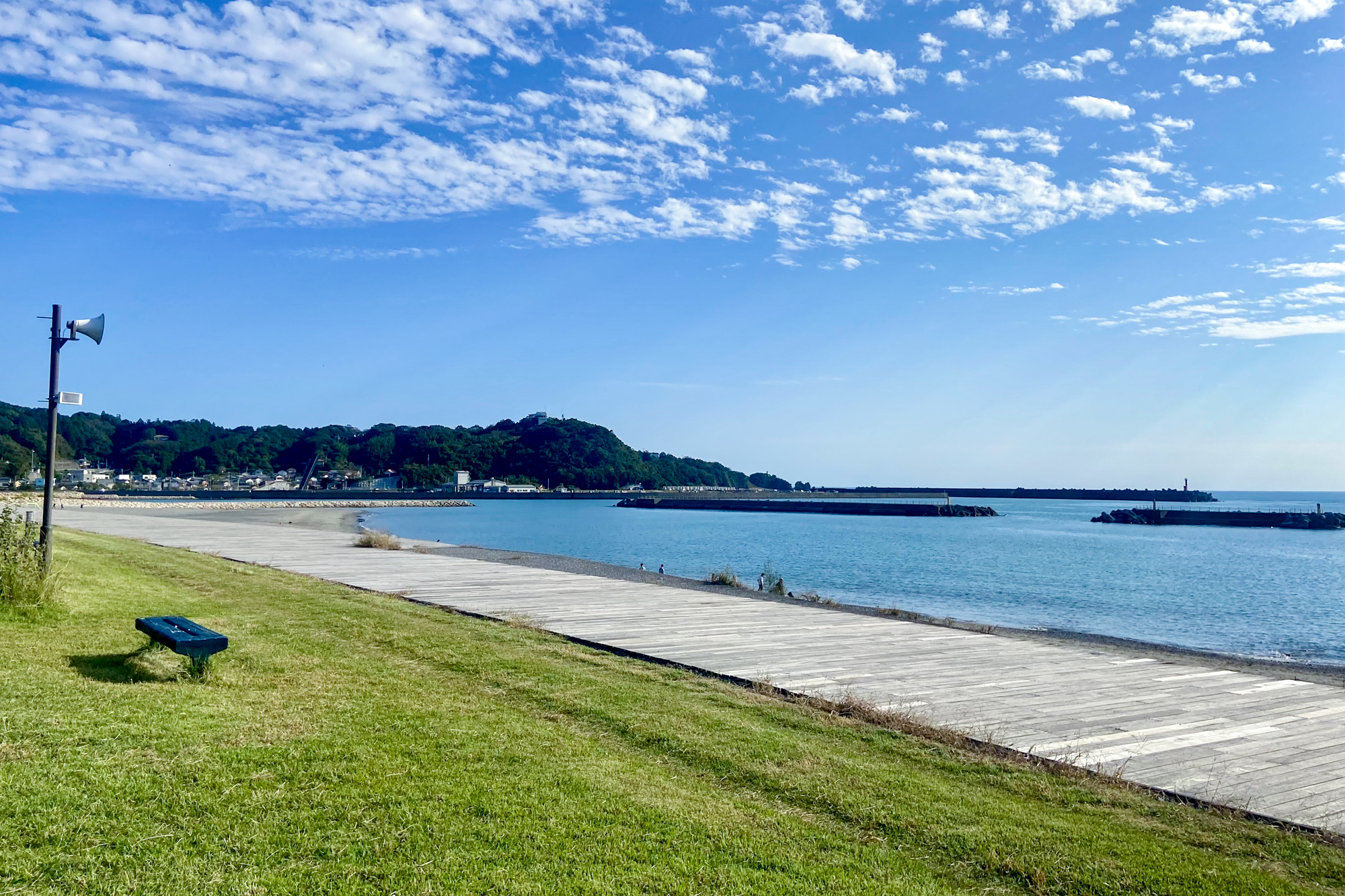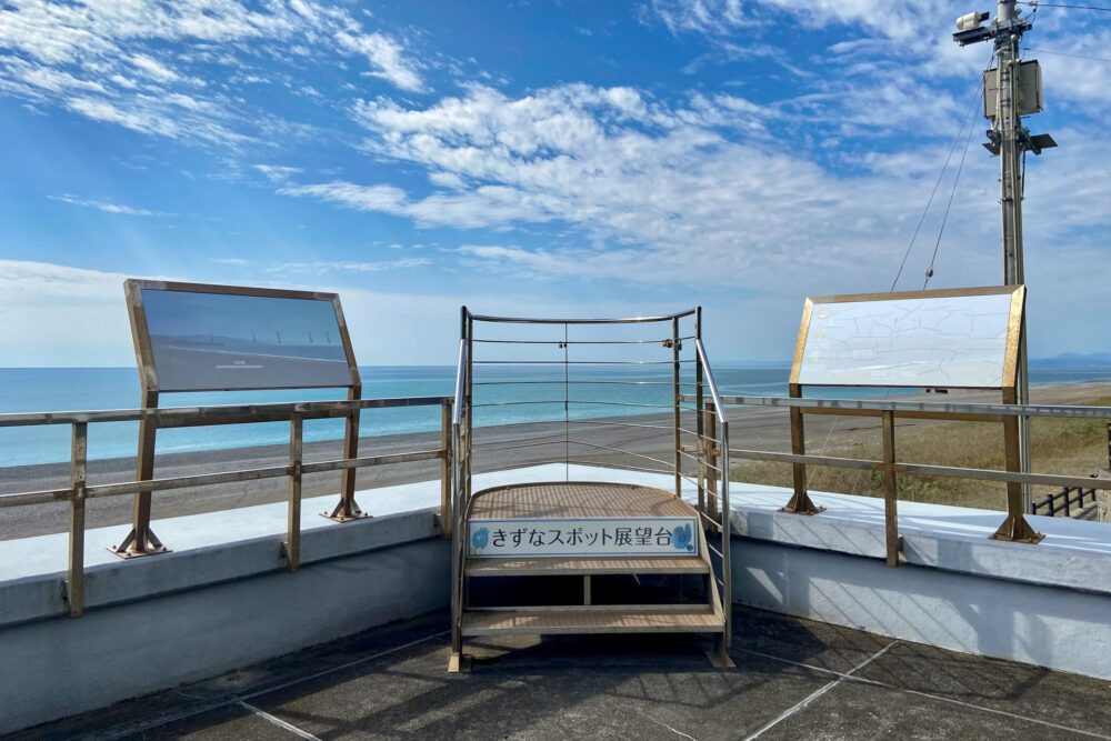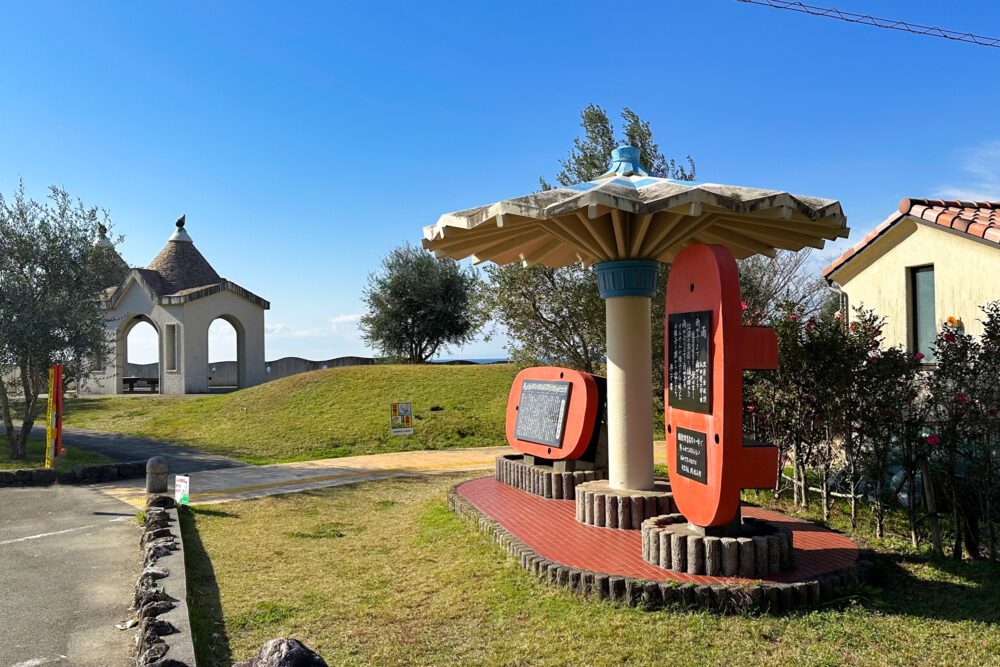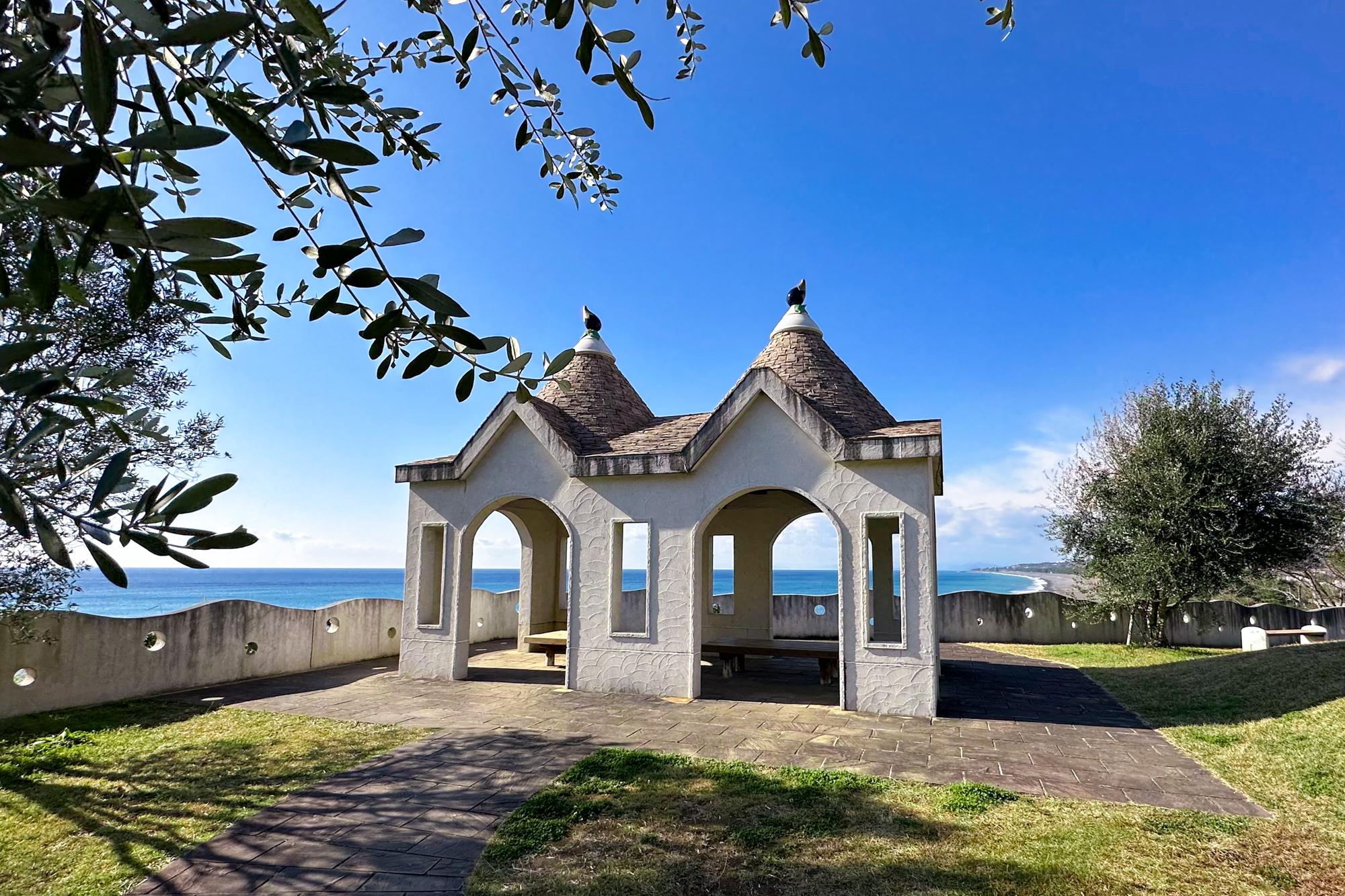 从琴之滨沿着海岸再往东行驶约3km的自行车,到达了“赤野自行车车道休息所”。被橄榄树和草坪包围的用地让人联想到地中海的印象深刻的建筑物,作为能一览琴之滨的照片映照点,在SNS上也成为了话题。周围春天樱花也会盛开。