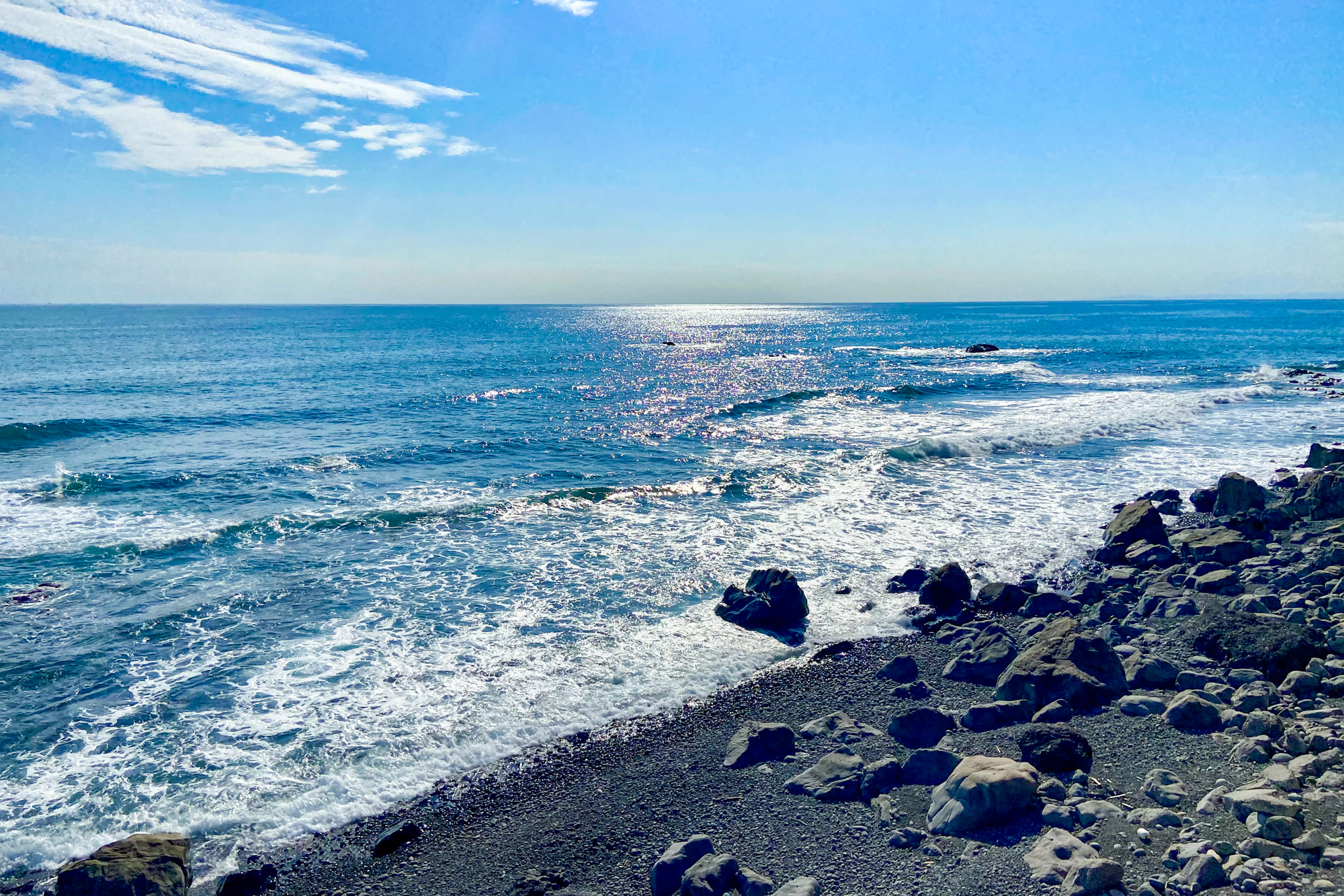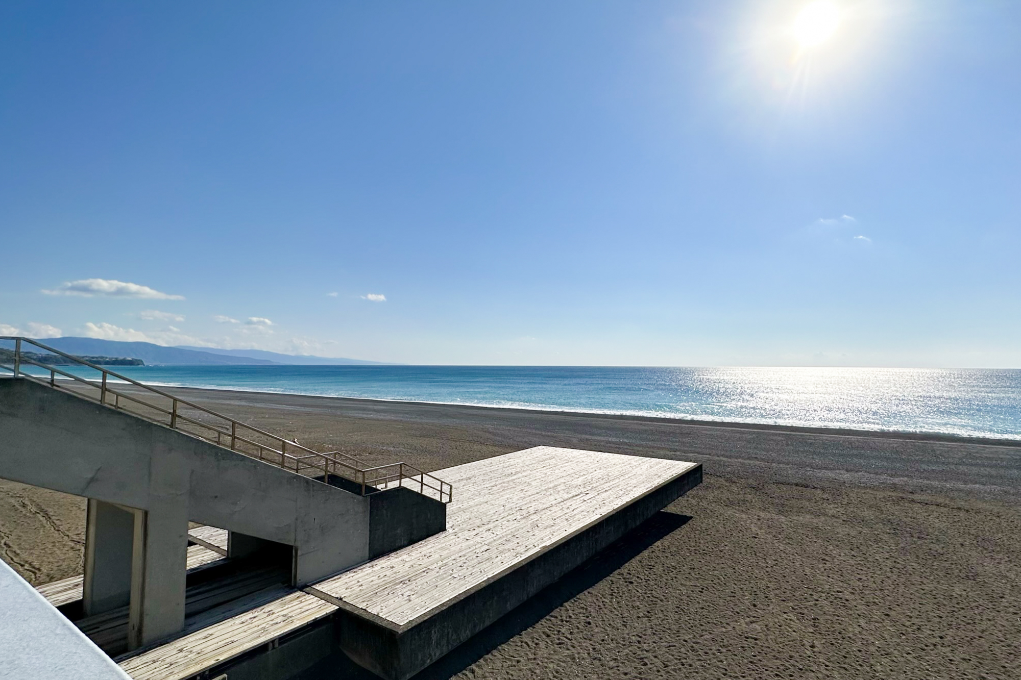 在被选为“日本白沙青松100选”的美丽沙滩对面,是一条笔直的水平线。