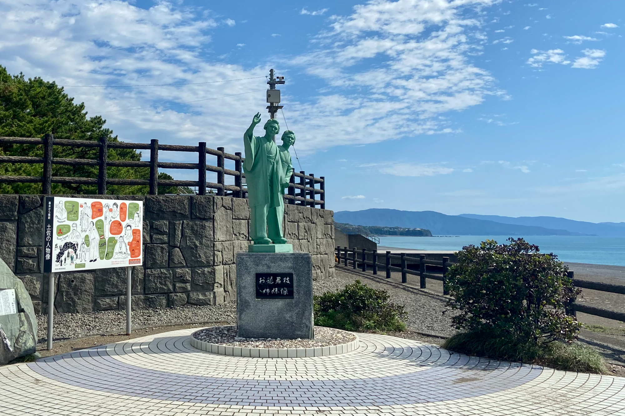 在琴之滨的停车场,坂本龙马的妻子“龙”和其妹妹“君江”向桂浜的龙马像挥手。据说是龙马死后,龙依靠妹妹寄身于艺西村而建造的。