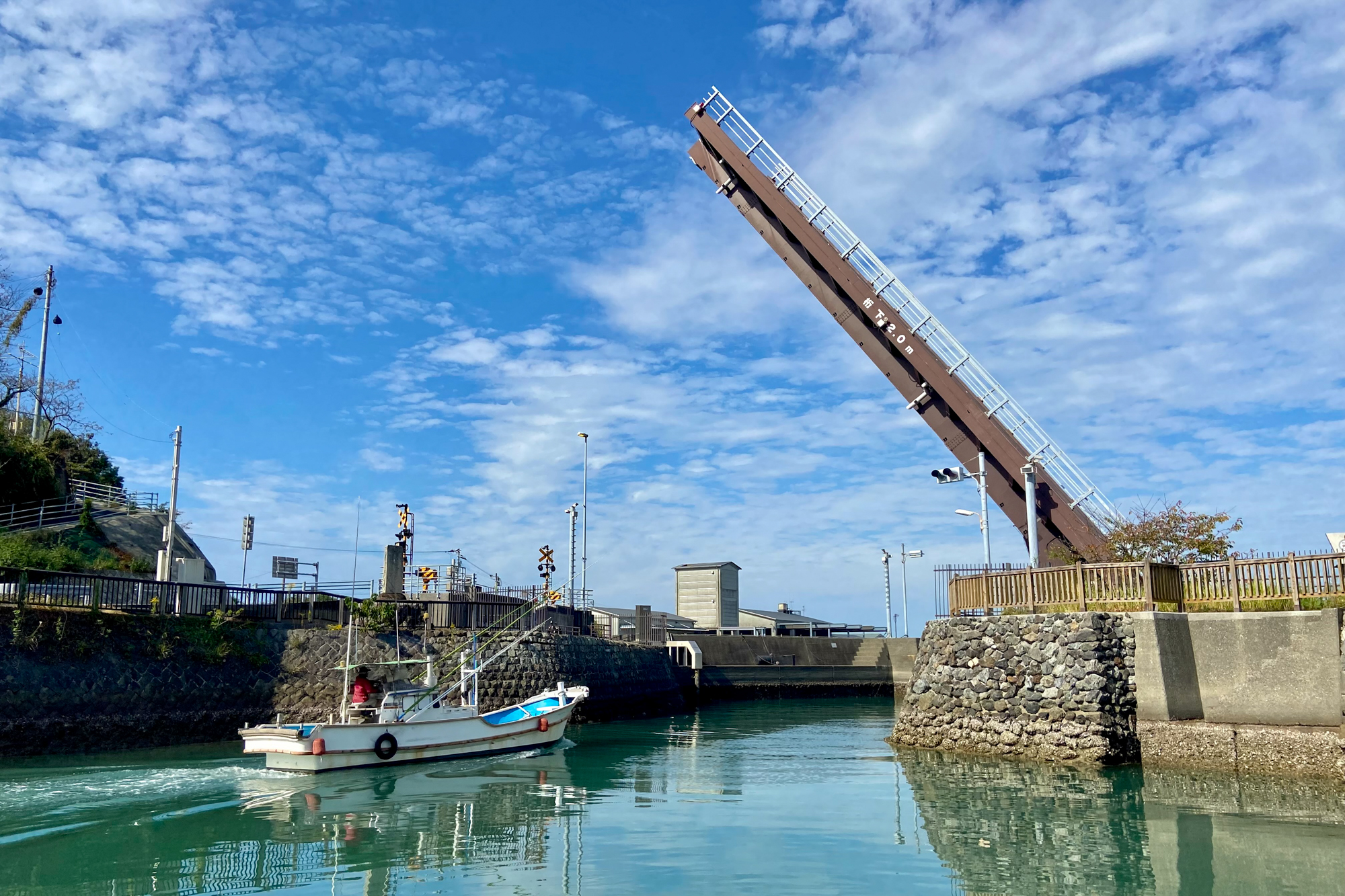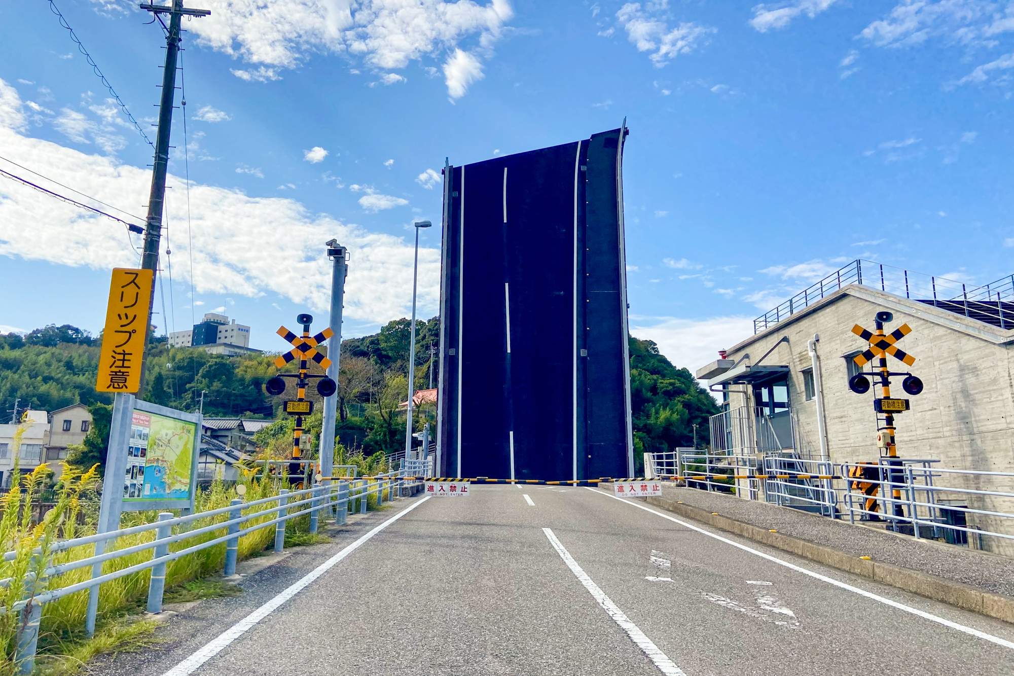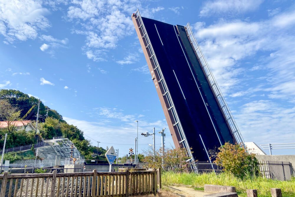 从雅·西公园向东约800米,架设在手结港入口的全长32米的可动桥。 1天6次,为了船的通航而开闭,一条道路随着桥架而慢慢跳跃,是全国罕见的“单侧跳开桥”。跳开角度最大70度,天高耸立的样子好像被道路刺伤了。