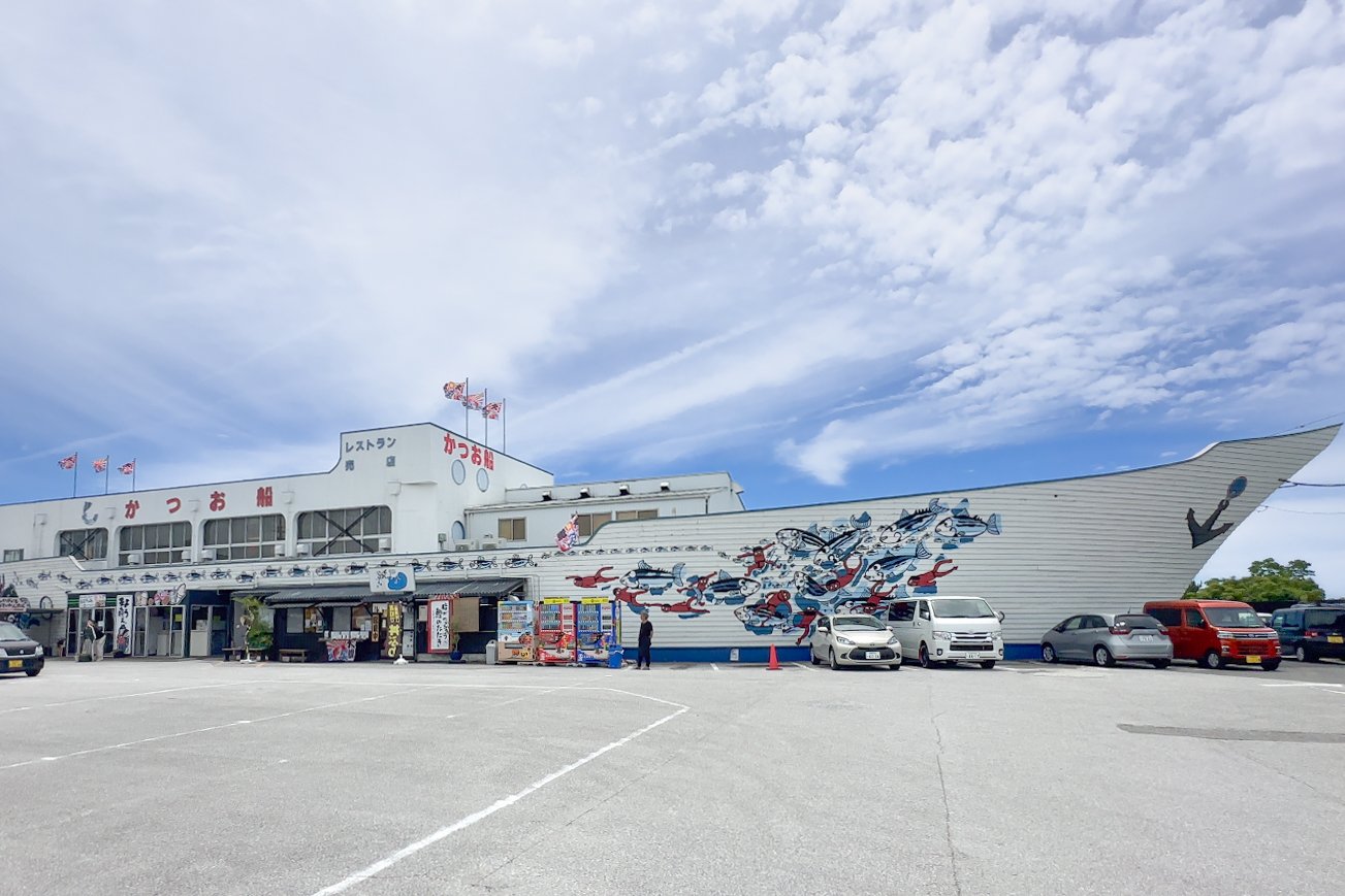 接下来访问的是距离高知新港很近的Drive in餐厅“鲣鱼船”。在用地内的“土佐塔基道场”,可以体验烤鲣鱼的稻草。