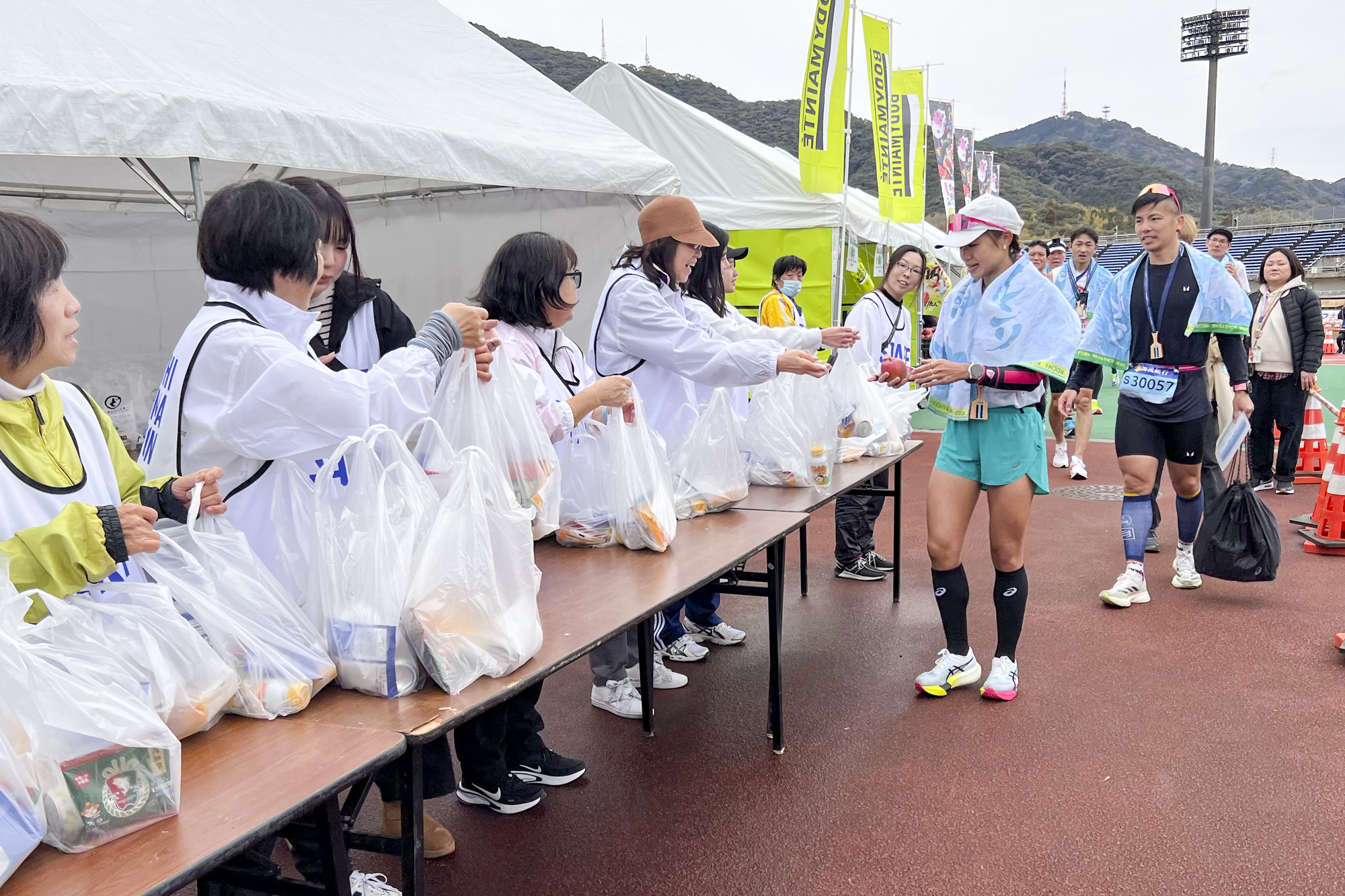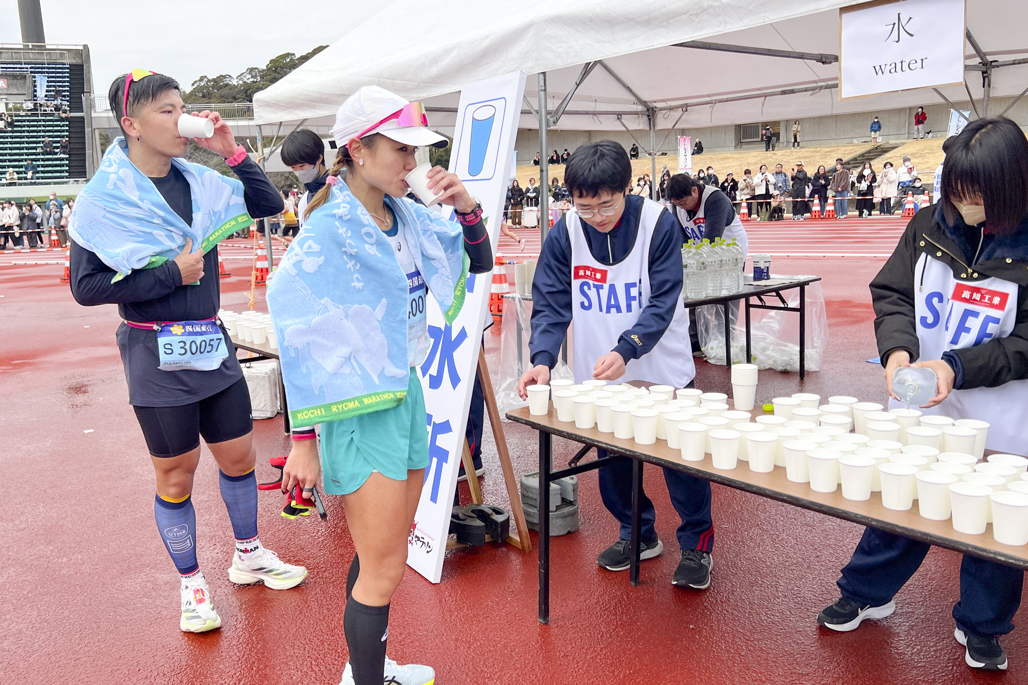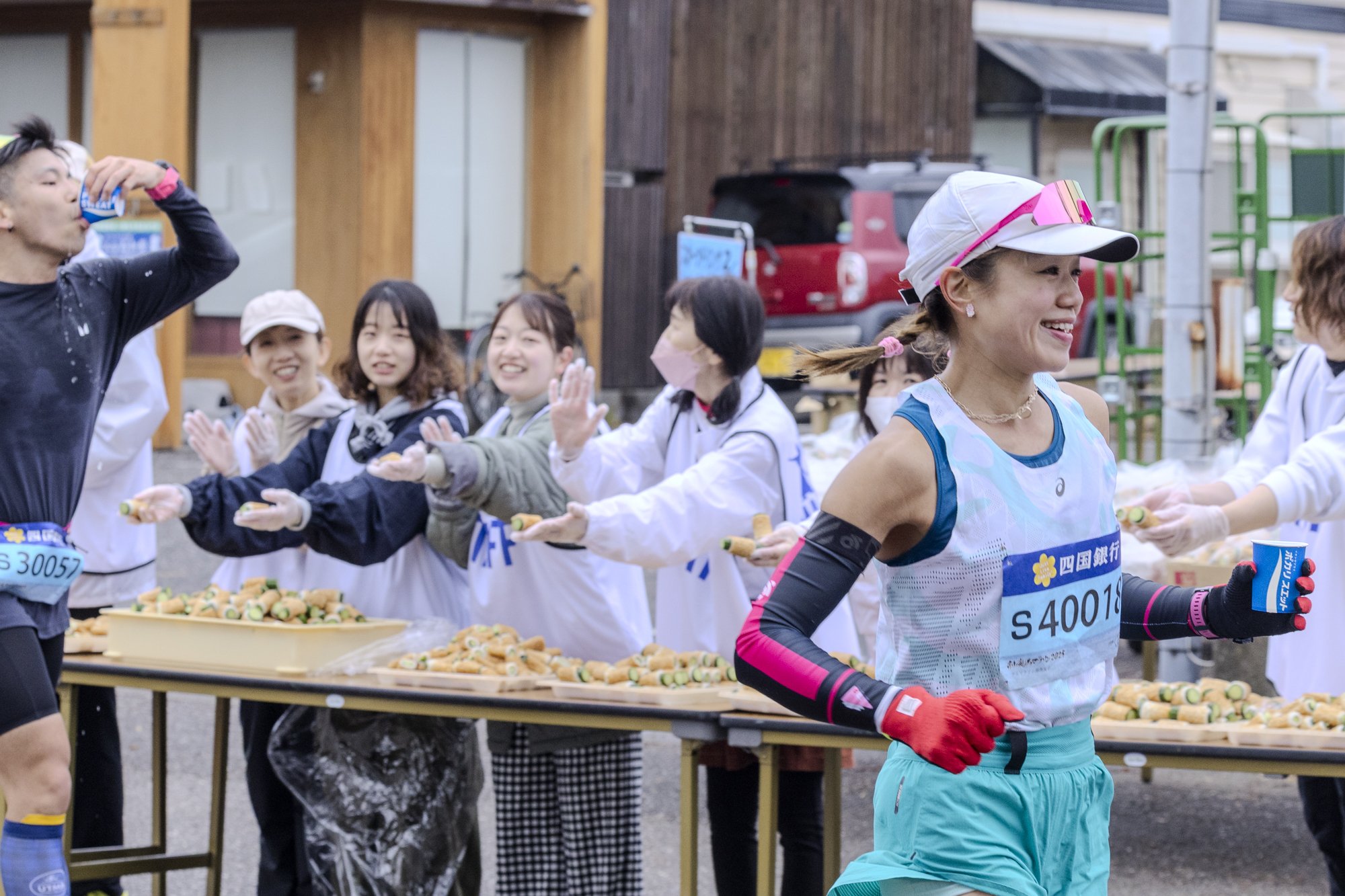 莉安说:“我觉得供水站很充足,运营很可靠。我认为这是一个可以安心奔跑的大会。艾德这次吃了面包。除此之外还准备了很多柚子汁、鲣鱼饭等高知特有的东西,很开心呢!”。