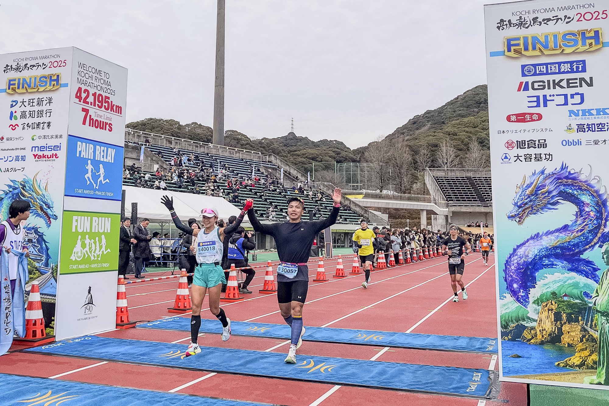 高知龙马马拉松是在高知县高知市、南国市、土佐市的42.195km上,约有1万名市民跑者跑的早春马拉松大会。2025年2月16日(星期日),在高知市中心的起点,今年也聚集了很多跑垒员。
