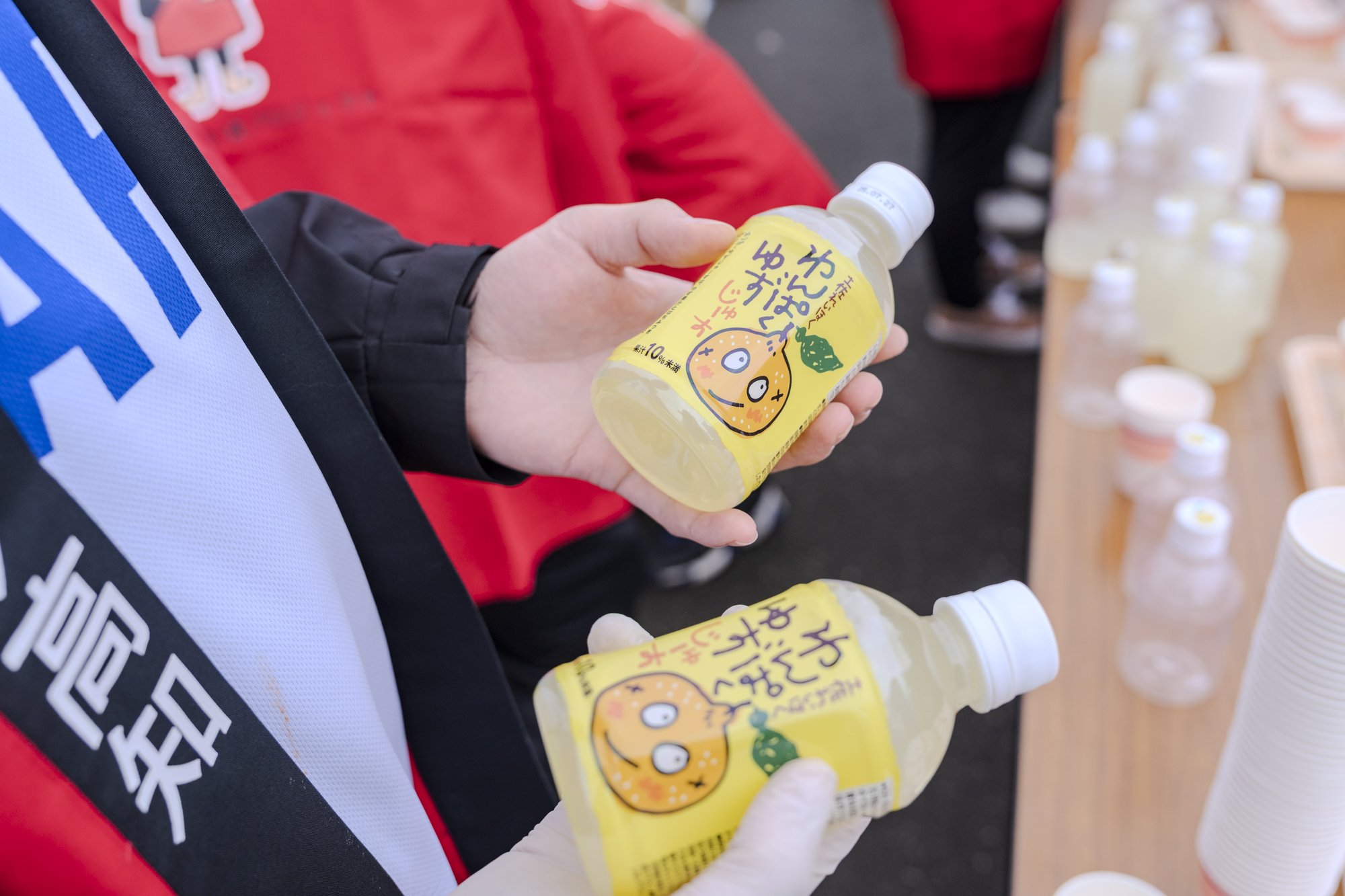 到结束后的跑垒员服务区。高知县特产的柚子果汁“御君马路村”和用芋头做的点心“盐拳头”等将作为礼物。“我很高兴收到很多礼物!”莉安说。