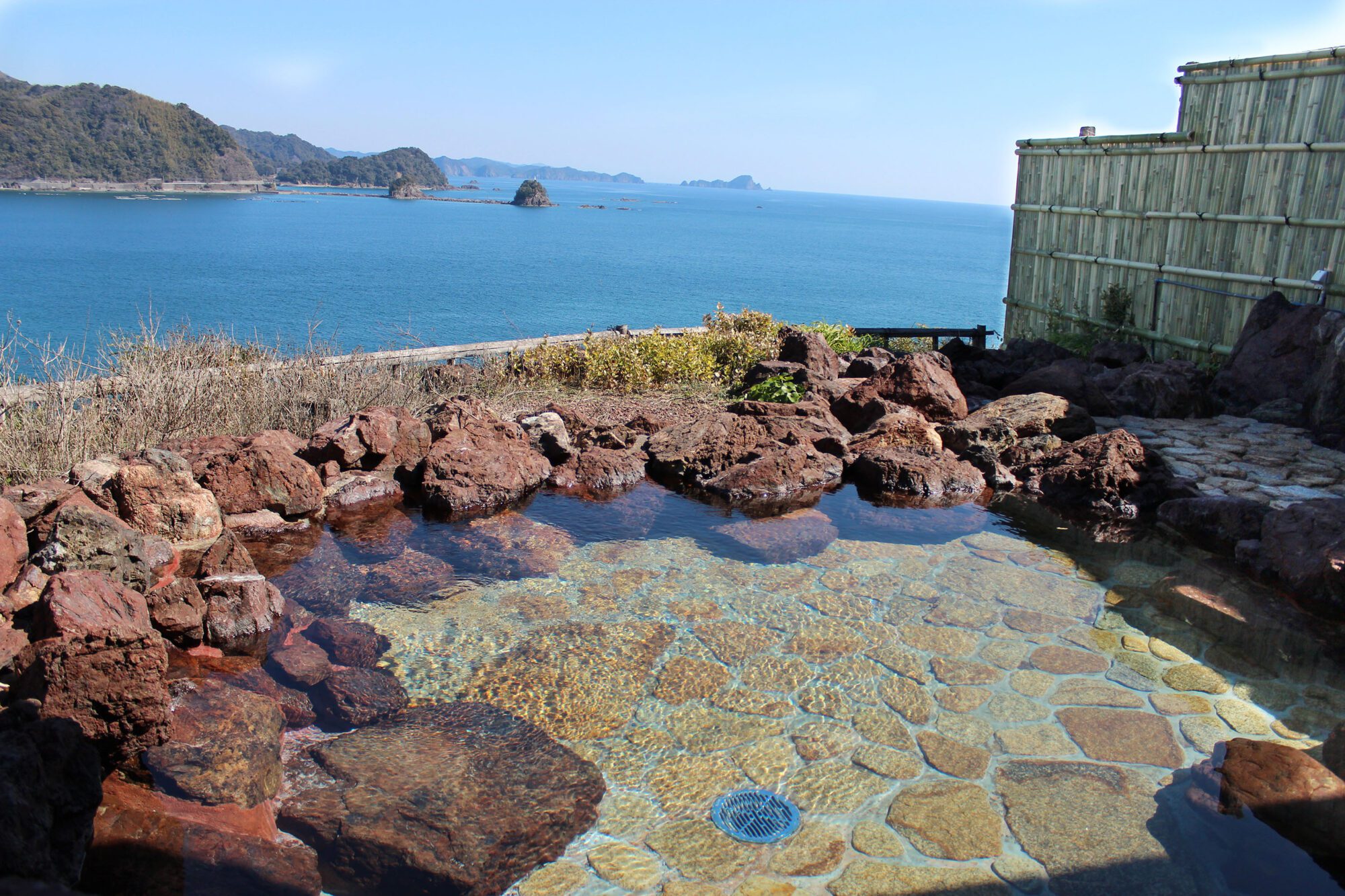 有涌出冷泉的两个大浴场和过滤从眼前的大海汲取的海水而涌出的“汐汤”露天温泉,在水蒸气的对面可以看到雄伟的太平洋景色。