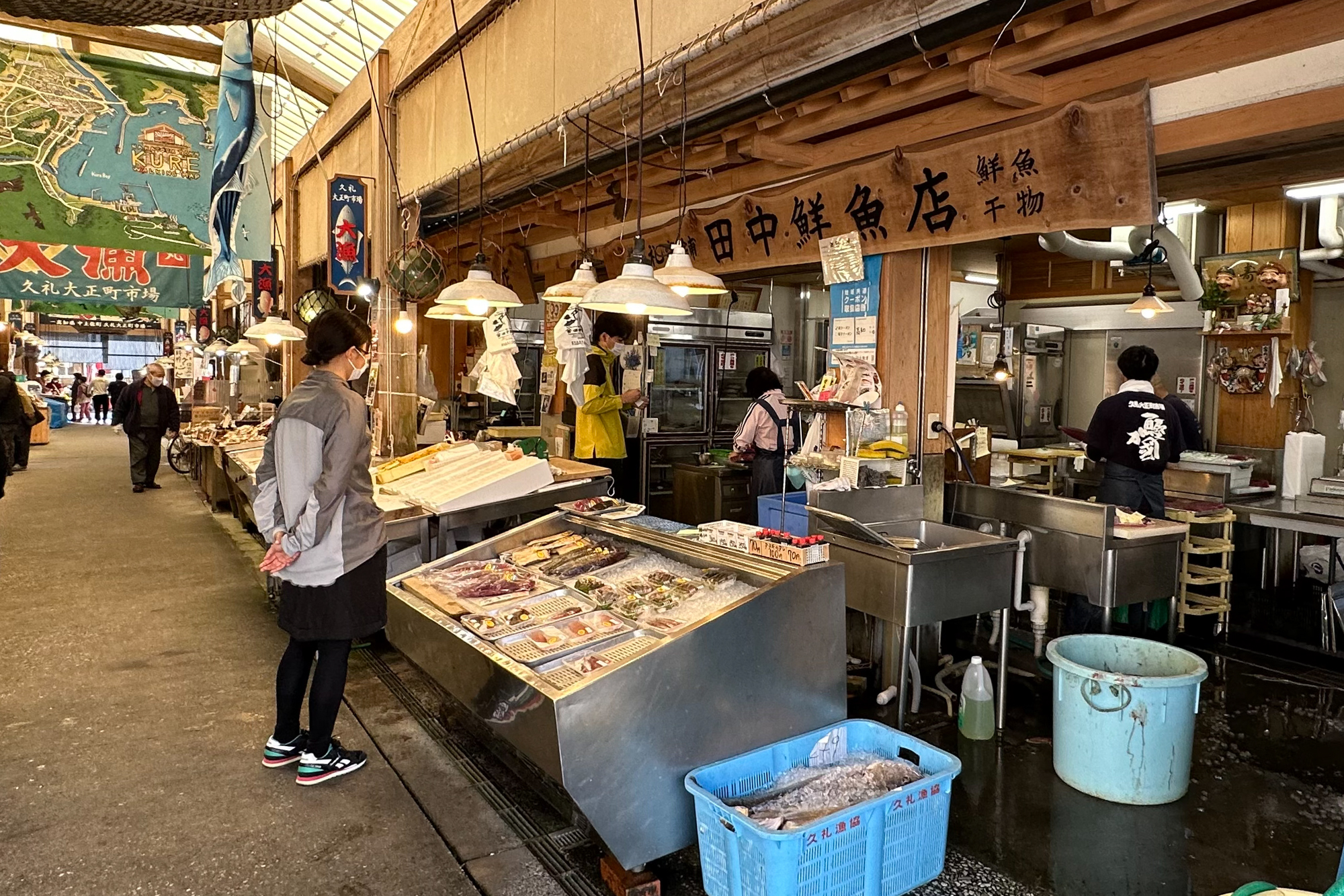 从明治时代中期开始,“久礼大正町市场”就成为了渔民钓到的鱼和农家培育的蔬菜和大米等交换物品的场所。以约140年的历史而自豪,看过明治、大正、昭和、平成、令和5个时代的市场,无论哪个时代都摆放着当地的新鲜食材。
