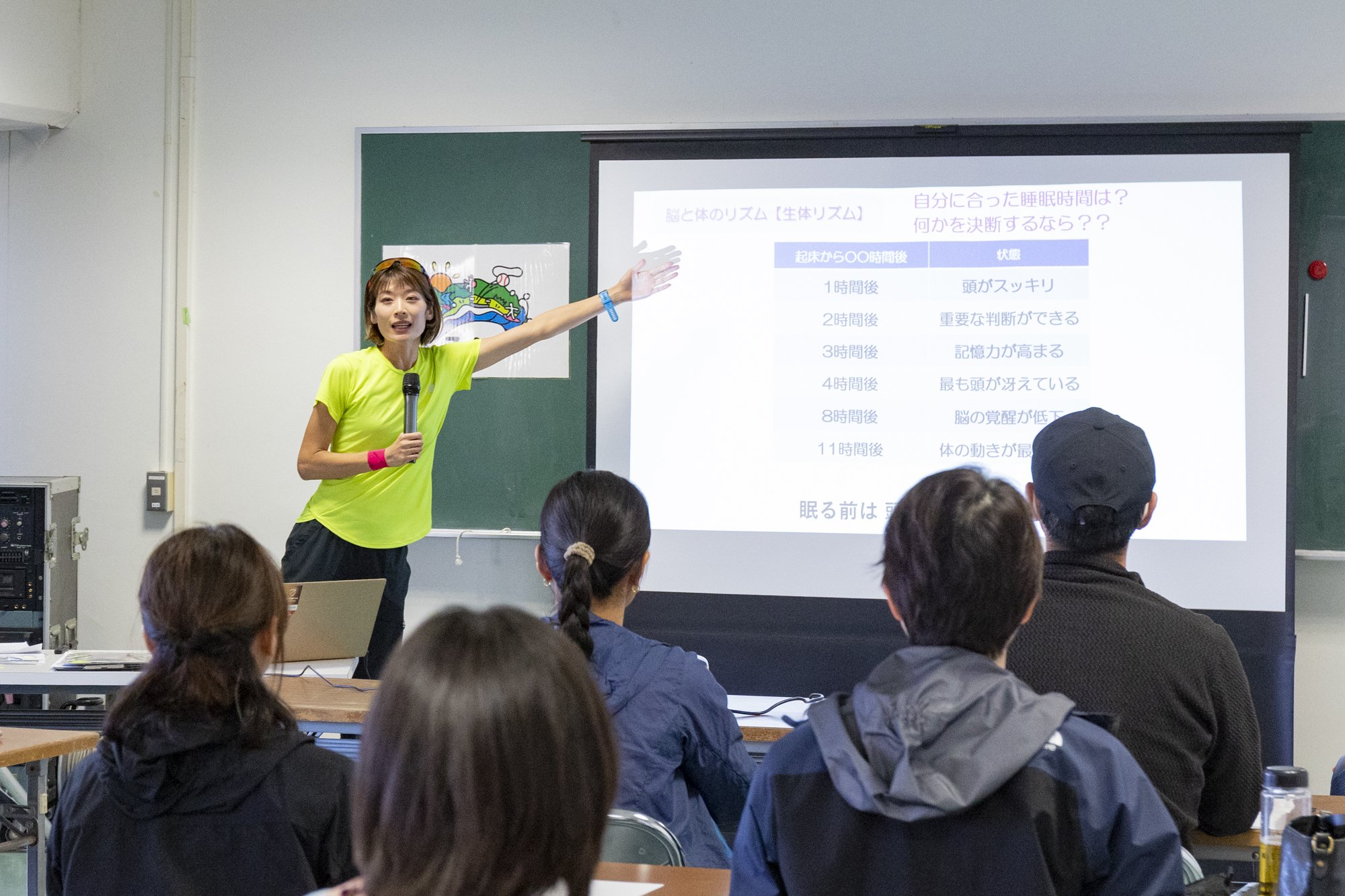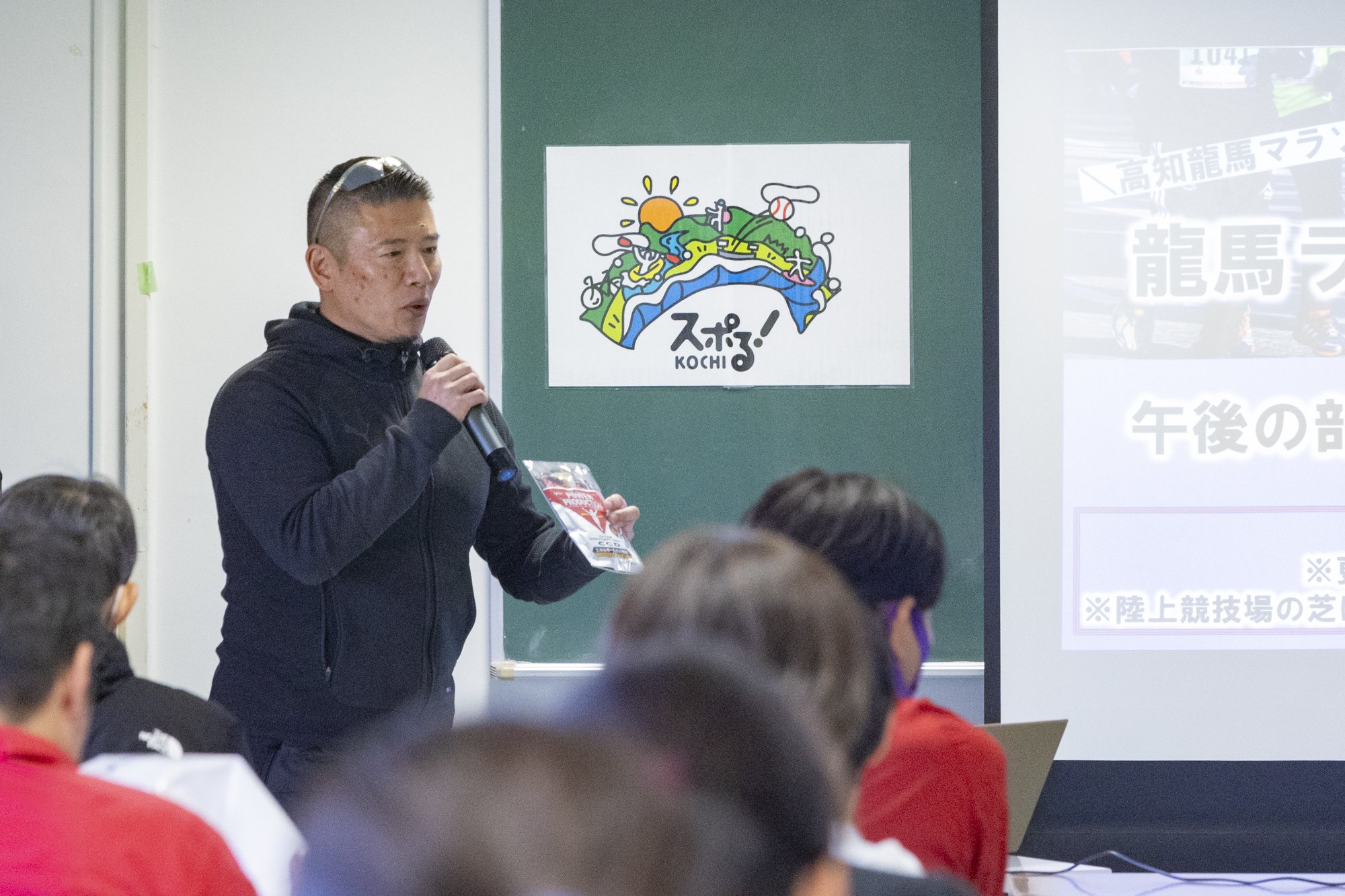 在高知龙马马拉松2024中,西谷担任接力马拉松的嘉宾。这次,我们用座学和实际技巧向我们介绍了为了提高表演和免疫力的快睡法、为了不受伤、高效地跑步的伸展运动、在坡道上跑步的要点等。
