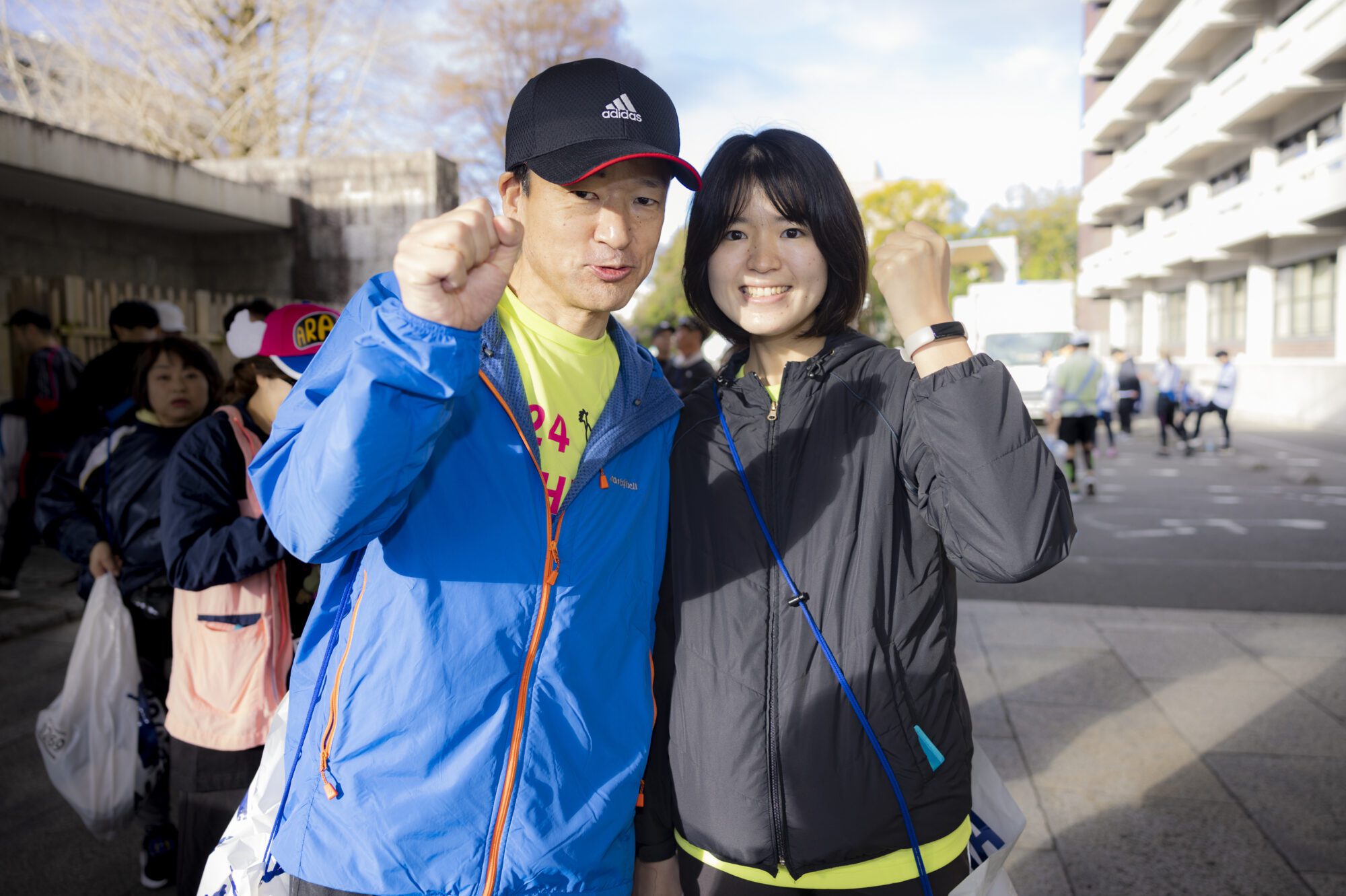 “我经常来高知玩,但是马拉松还是第一次。因为知道今年有双人接力赛,所以邀请了女儿。因为是第一跑者,所以责任重大。我会努力让你看到你的背影!”。