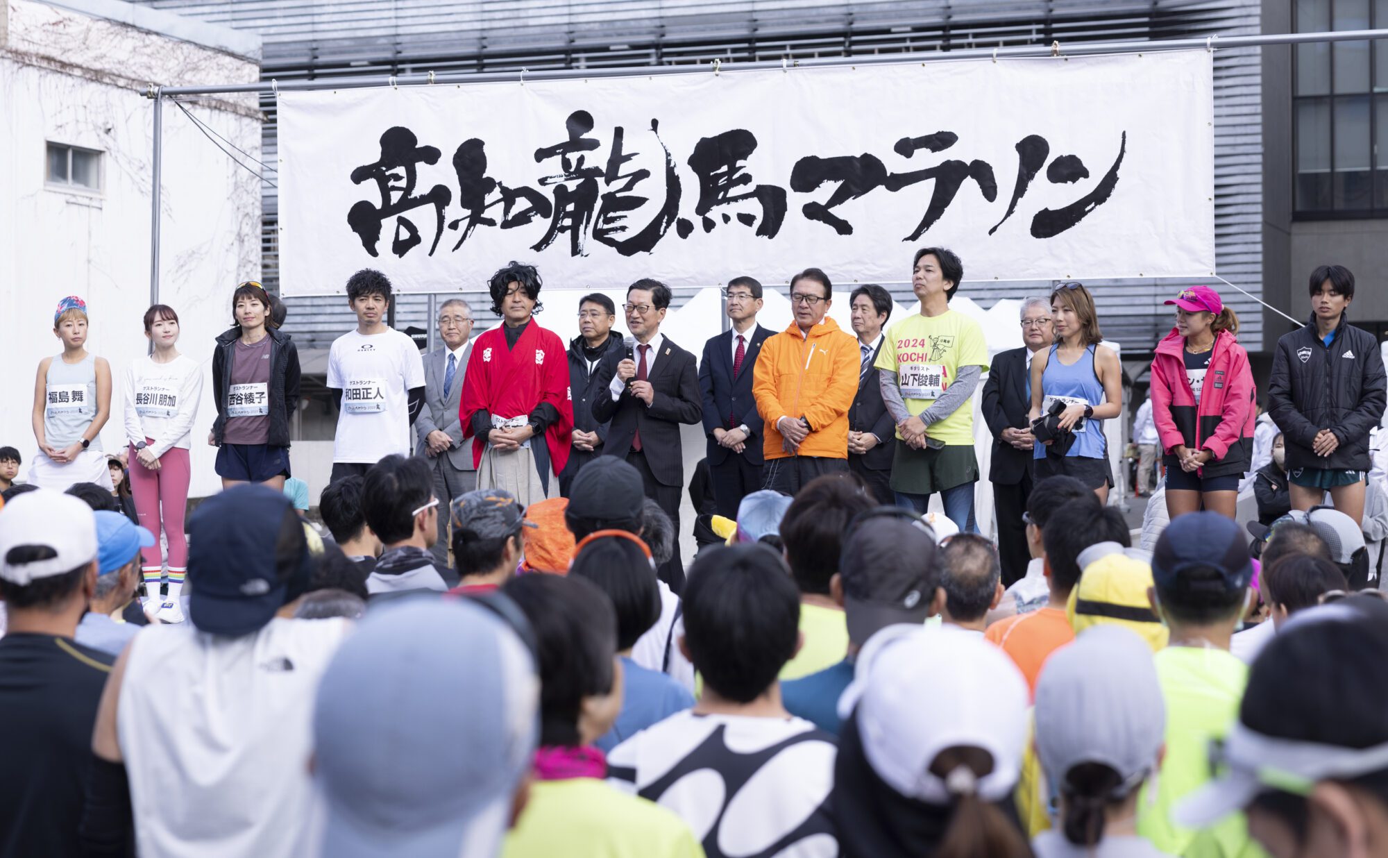 接下来举行的“全程马拉松”的开始仪式上,和过去最多的嘉宾们一起,从韬田省司高知县知事那里得到了“山、海、里、高知充满魅力的路线。请大家玩得开心”。