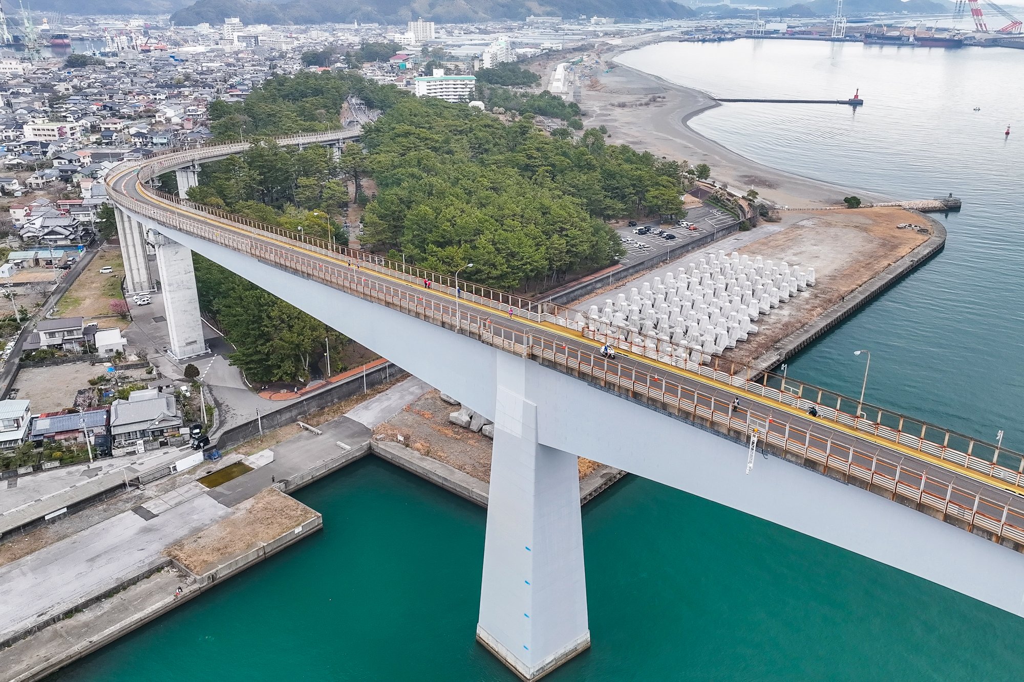 从海面到50米的高度上坡,全长1,480米的“浦户大桥”,沿着太平洋长达2,1Km的花坛连绵不绝的花海道,以仁淀蓝闻名的“仁淀川”注入大海的河口部的“仁淀川河口大桥”等,从高知的市区到田园、太平洋沿岸有各种各样的景观。