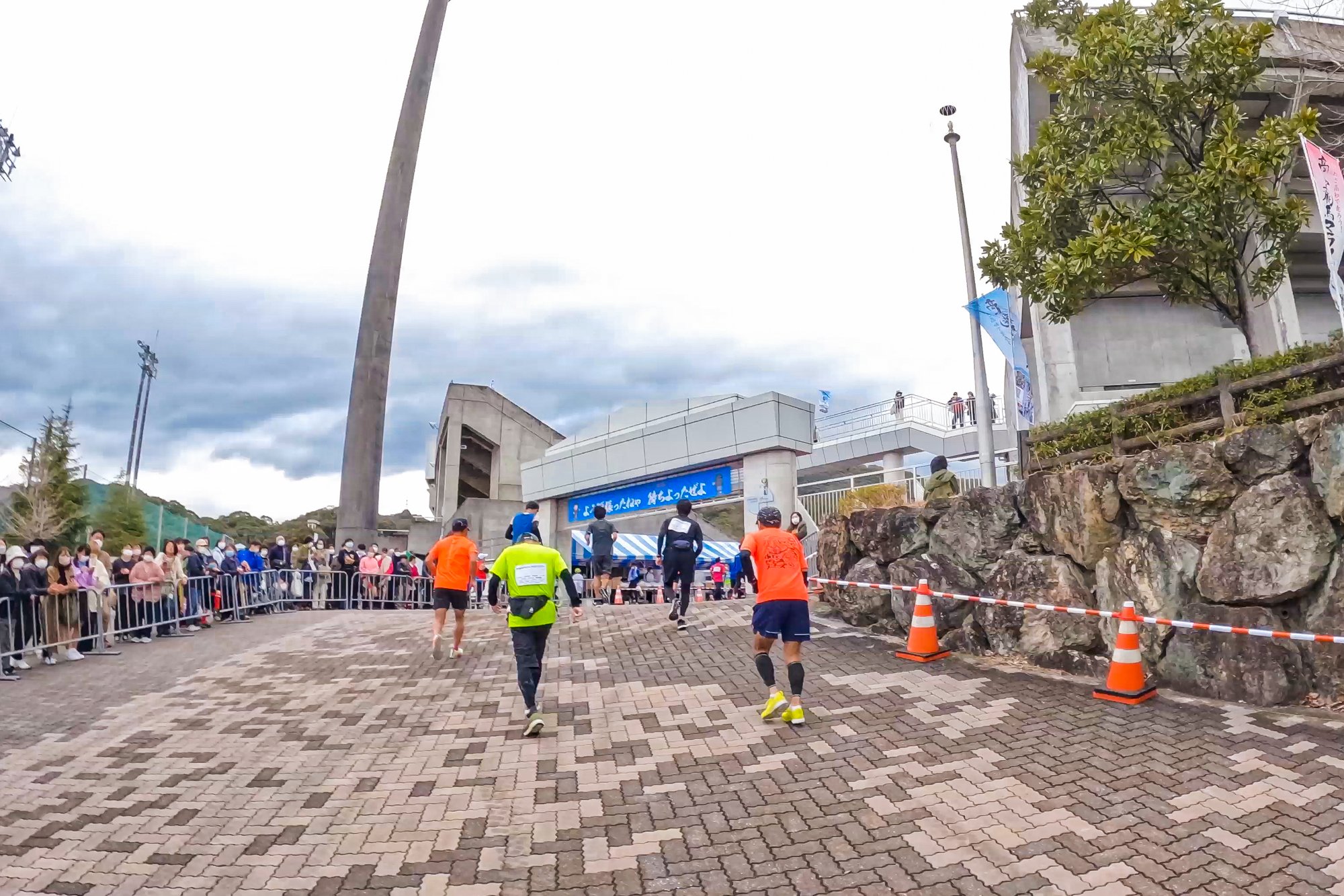继作为终点的春野综合运动公园之后的最后2km,在折心的上坡上竭尽全力攀登,沿途的声援会变得更大,可以看到田径赛场的大门。