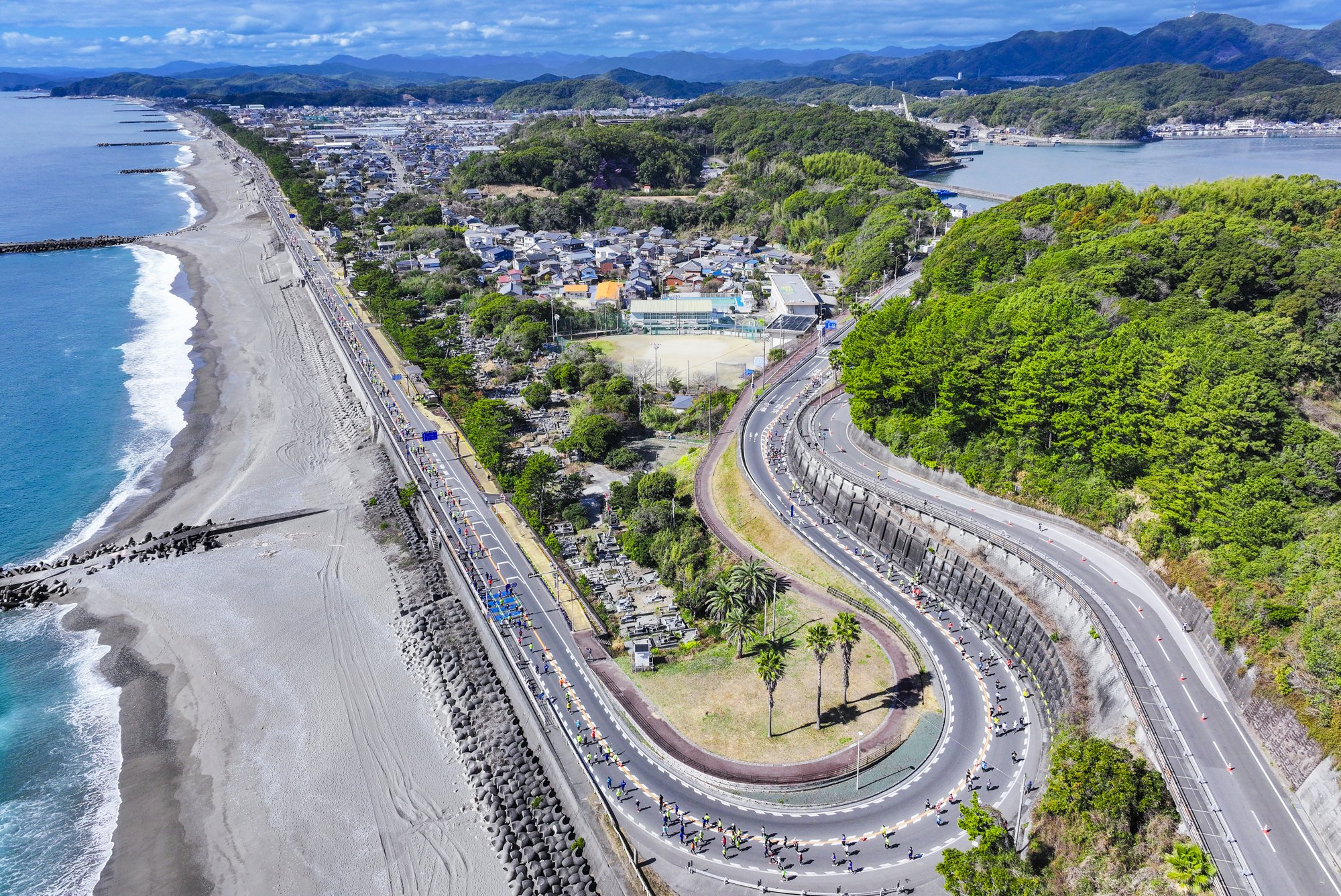 从中心市区开始,穿过田园风景,围绕太平洋绝景的路线,来自全国各地的长跑者们挑战的全程马拉松。沿途的声援对跑步者来说是最重要的力量。