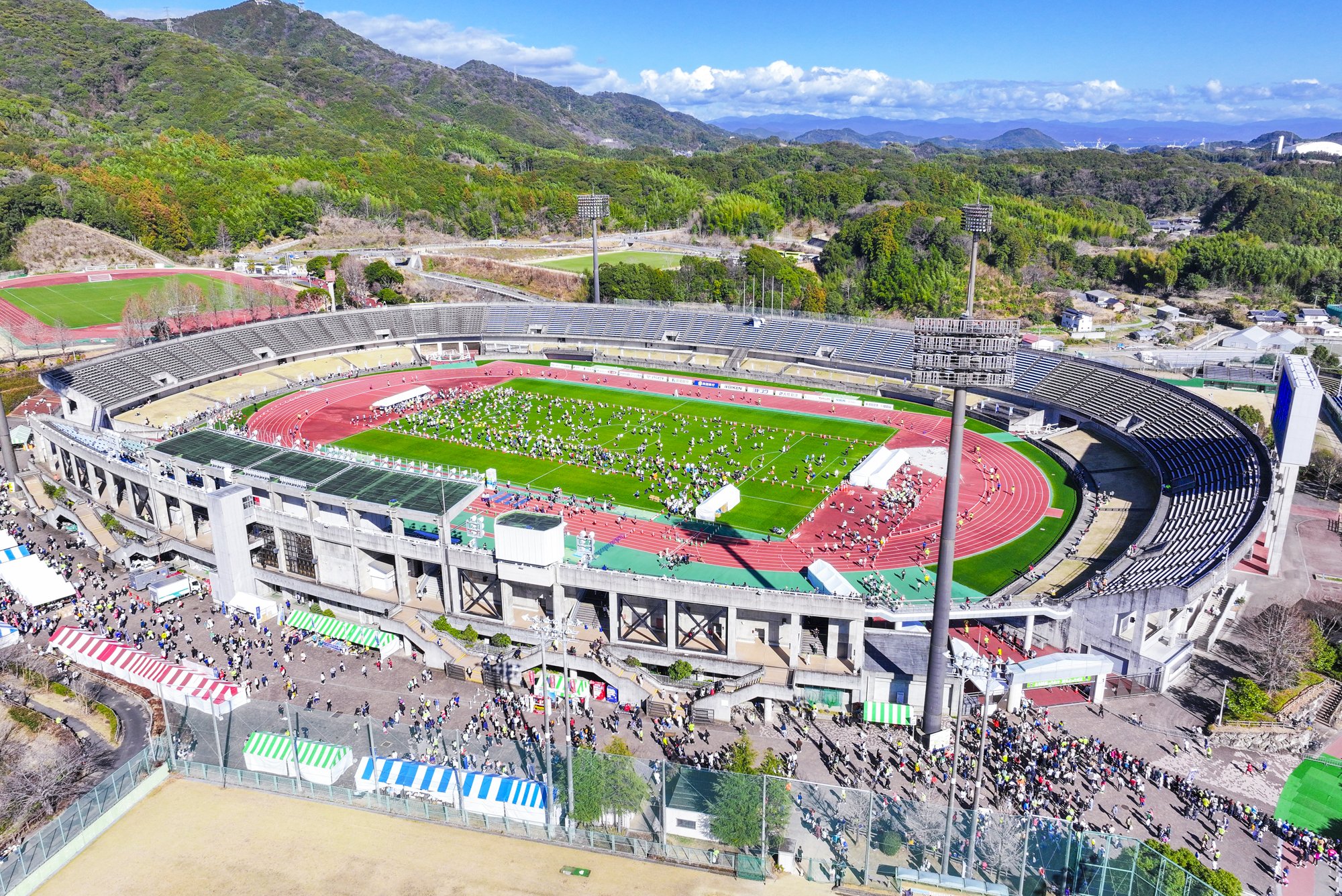 高知县立春野运动公园陆上竞技场是一个拥有广阔占地而自豪的终场会场。终点前聚集了很多应援者,迎来了对跑垒员来说难忘的终点。春野综合公园内自然资源丰富,孩子们可以玩的空间也很充实。