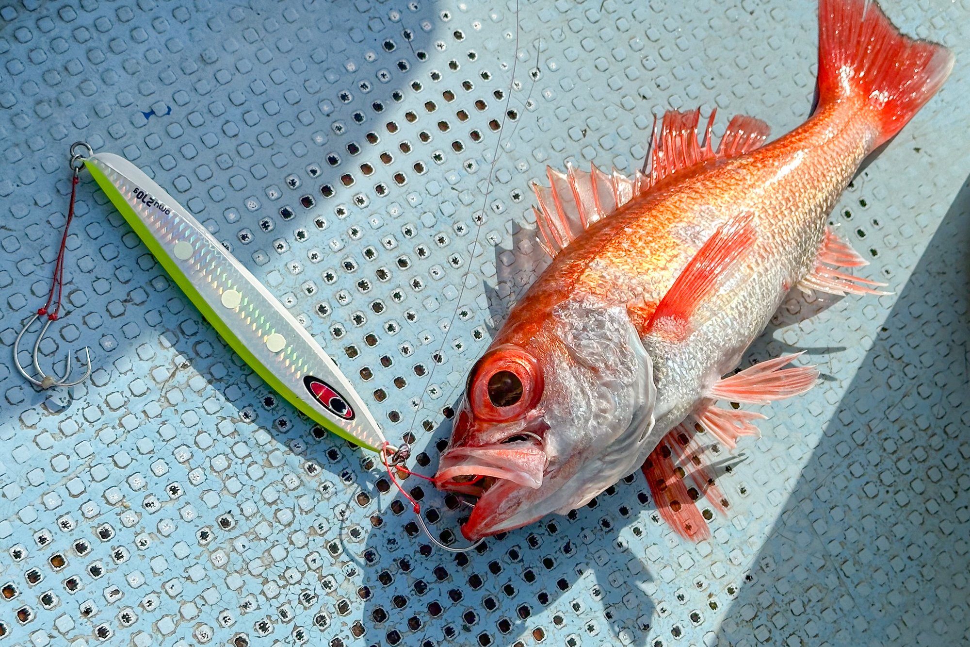 顺便说一下,吉金是指用金属吉格这种金属制成的疑似饵食上加上针的装置来瞄准鱼的钓鱼方法。作为能瞄准各种各样的鱼的非常深奥的钓鱼,近年来变得很受欢迎。