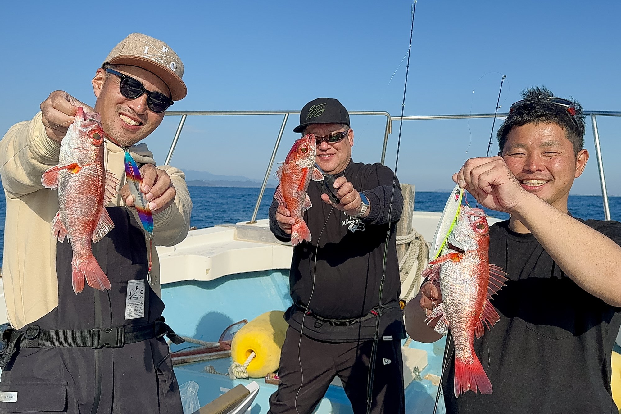 继汤泽之后,其他的参加者也顺利钓到了泥鳅,有时3个人同时钓上来,船上气氛高涨。也有一个人钓到多个喉咙的人,是再次感受到室户大海丰富的瞬间。