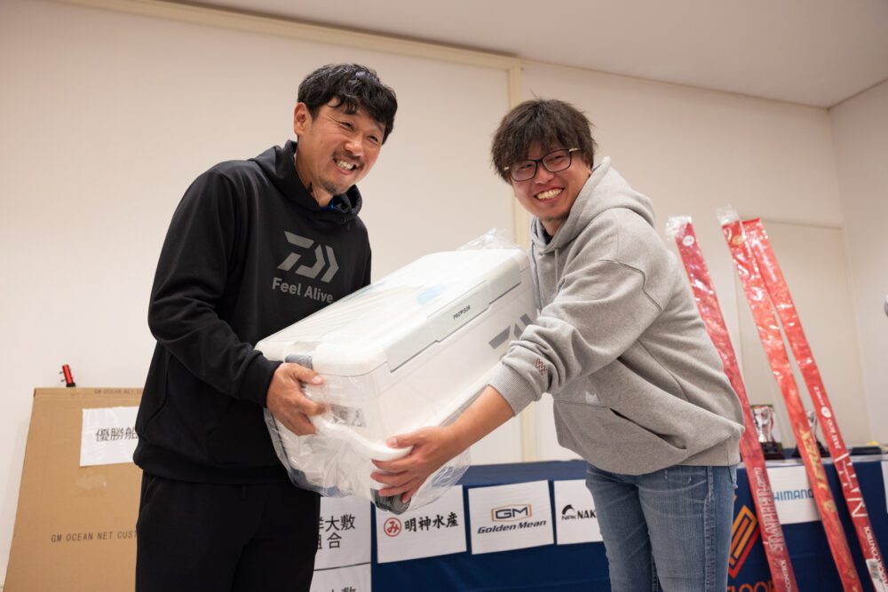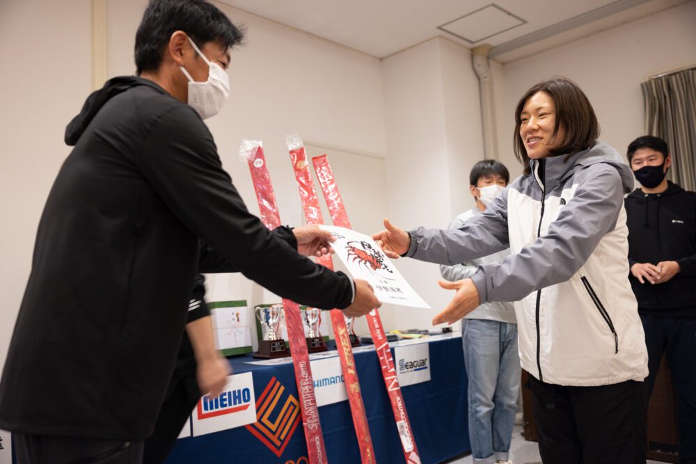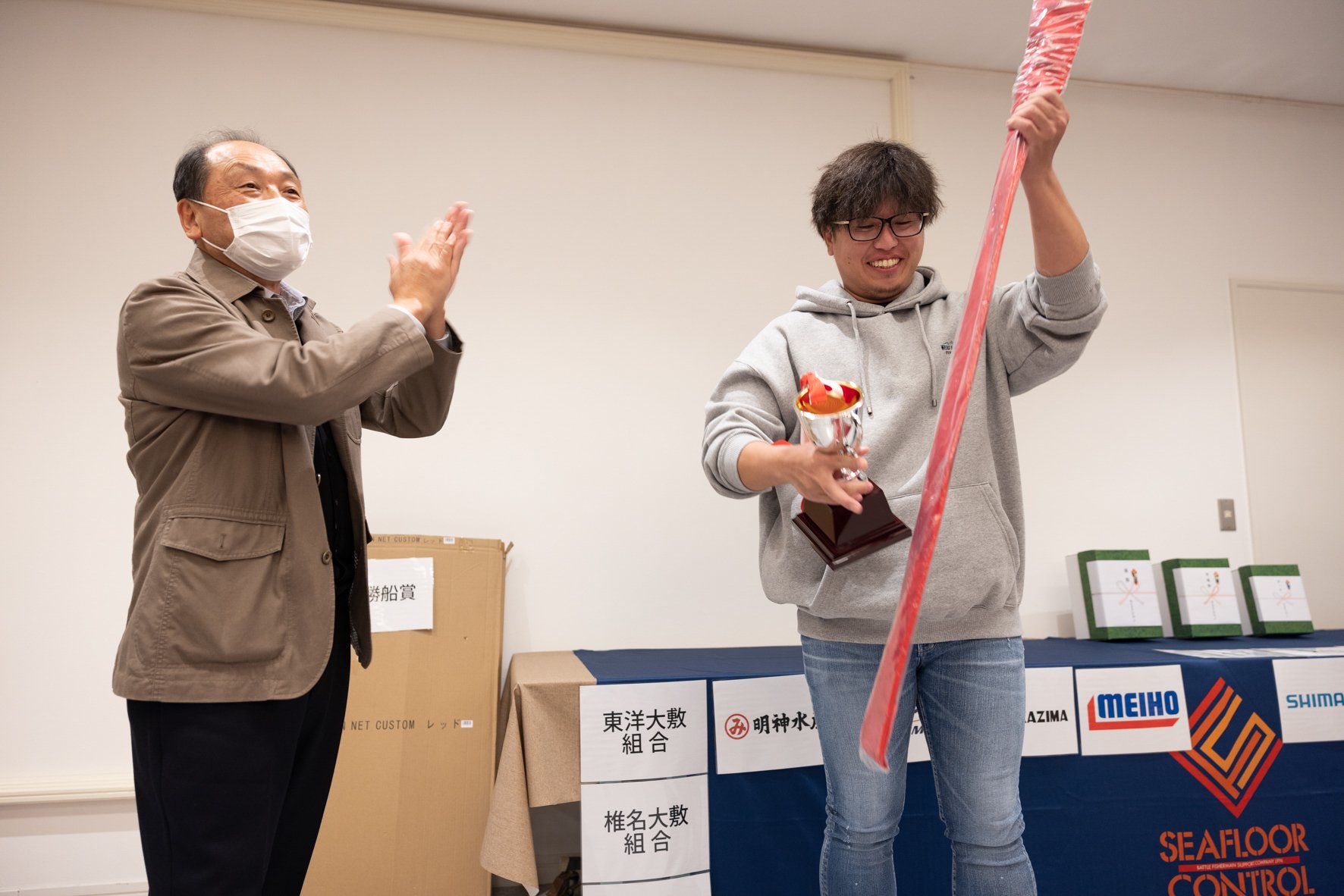 在接下来的表彰仪式上,在多鱼类部门、船长奖发表后,发表了从第5名到第1名。在从第4名到第1名的差距仅为50g的混战中,从高知市参加的横田漂亮地取得了冠军。