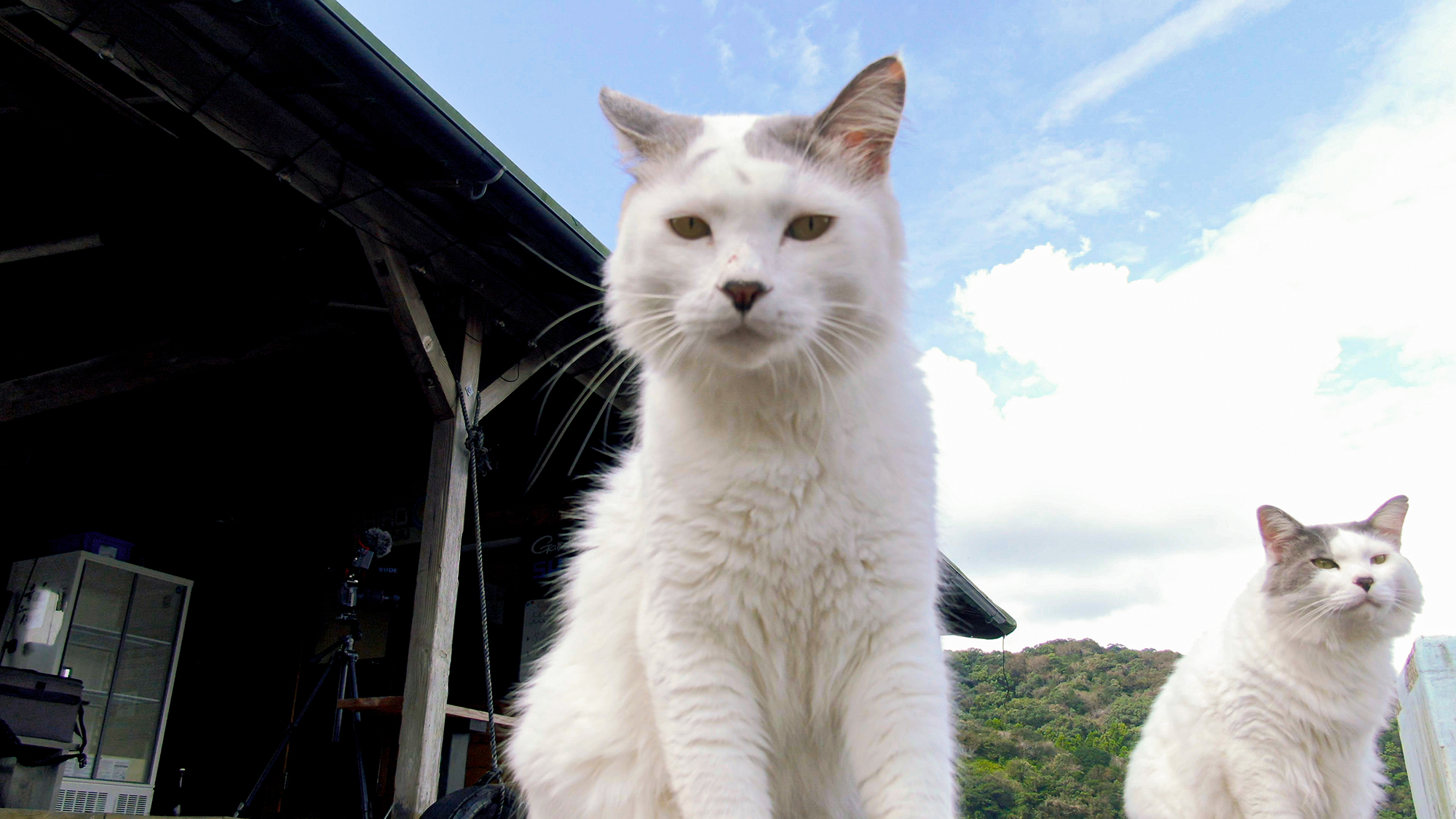 在钓鱼护城河,毛茸茸的猫来迎接我。好像习惯了人,一边露出肚子一边躺着的样子非常可爱!