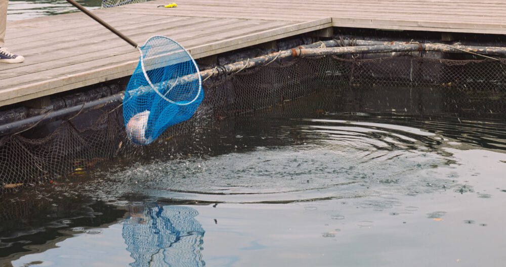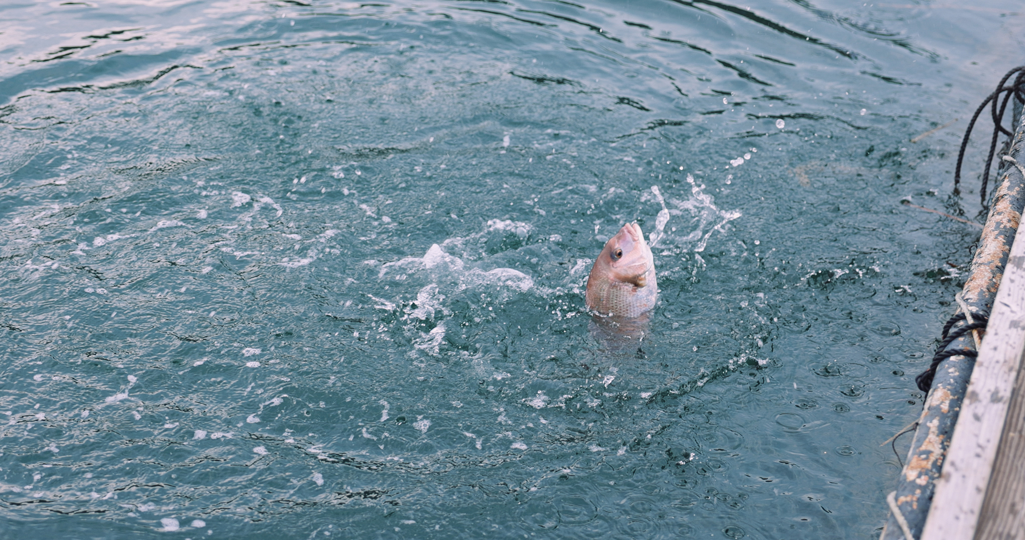 这次我体验的是海上钓鱼护城河钓鱼。所谓海上钓鱼护城河,是指漂浮在自然海上的木筏中放鱼的管理钓鱼场。