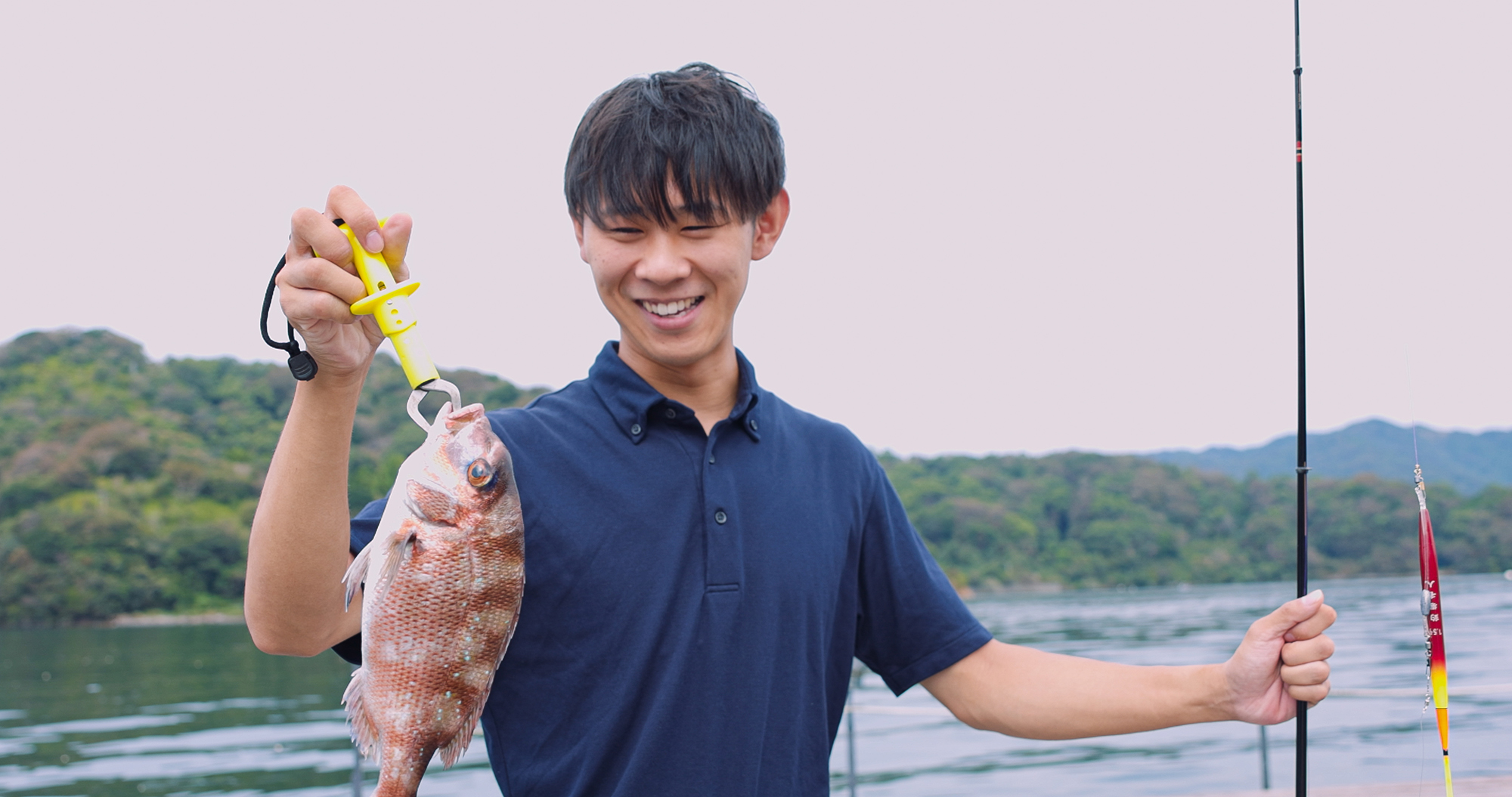 这次是三重县出身,现在是大学生村石先生。通过第一次钓鱼体验,传达了自己感受到的魅力。