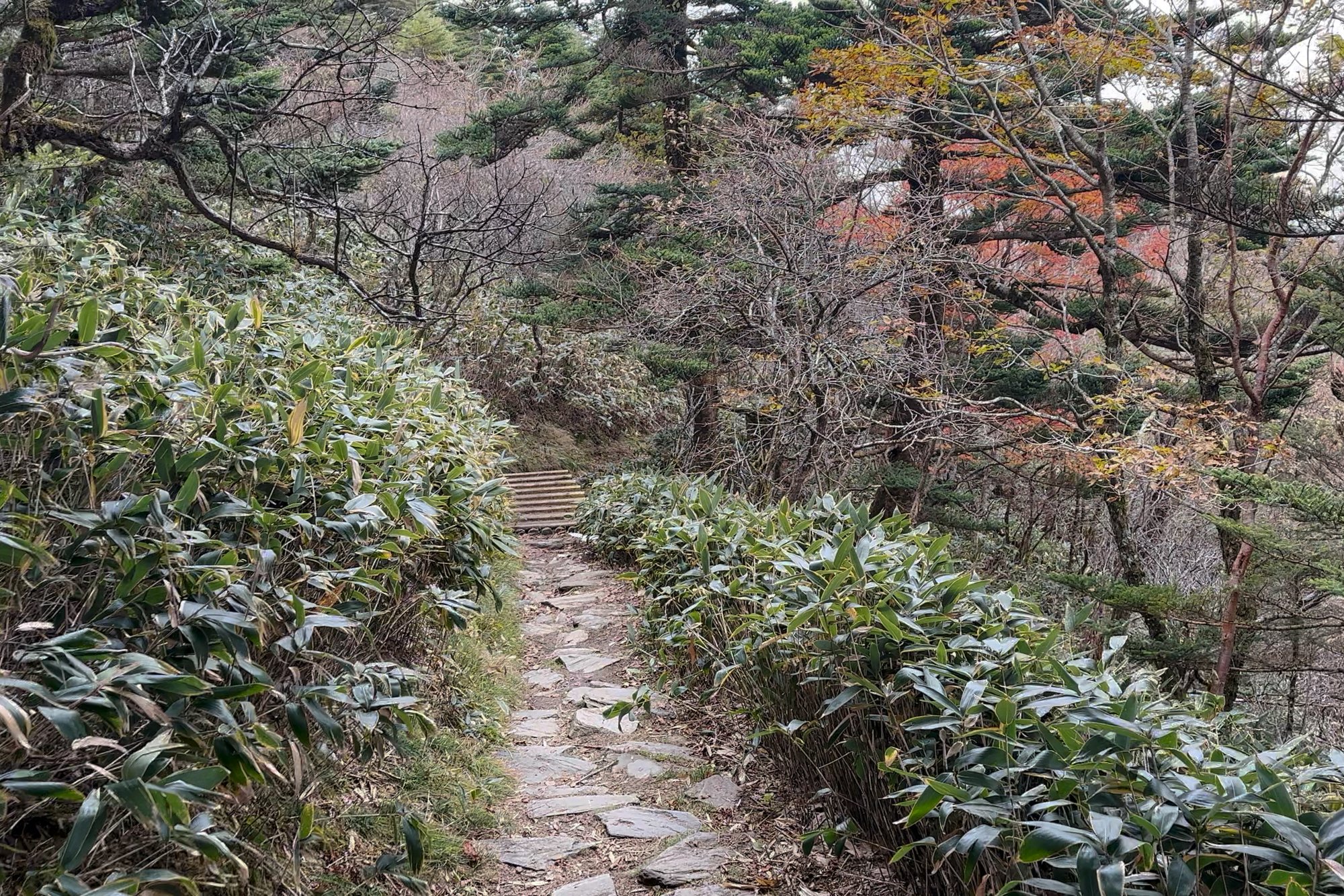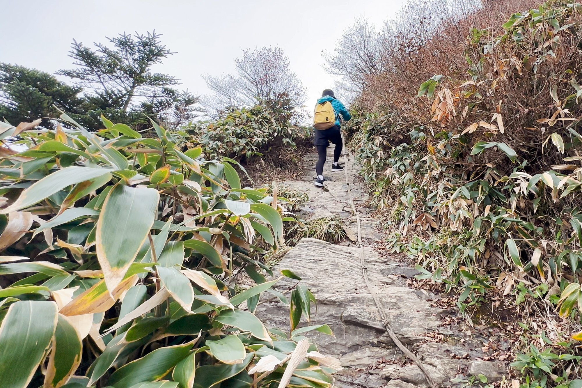 经过瓶森被称为“男山”的第一个顶峰,以山顶的“女山”山顶为目标。从登山口开始利用画圆的路线,距离约3.2km,高低差约200米的路程。