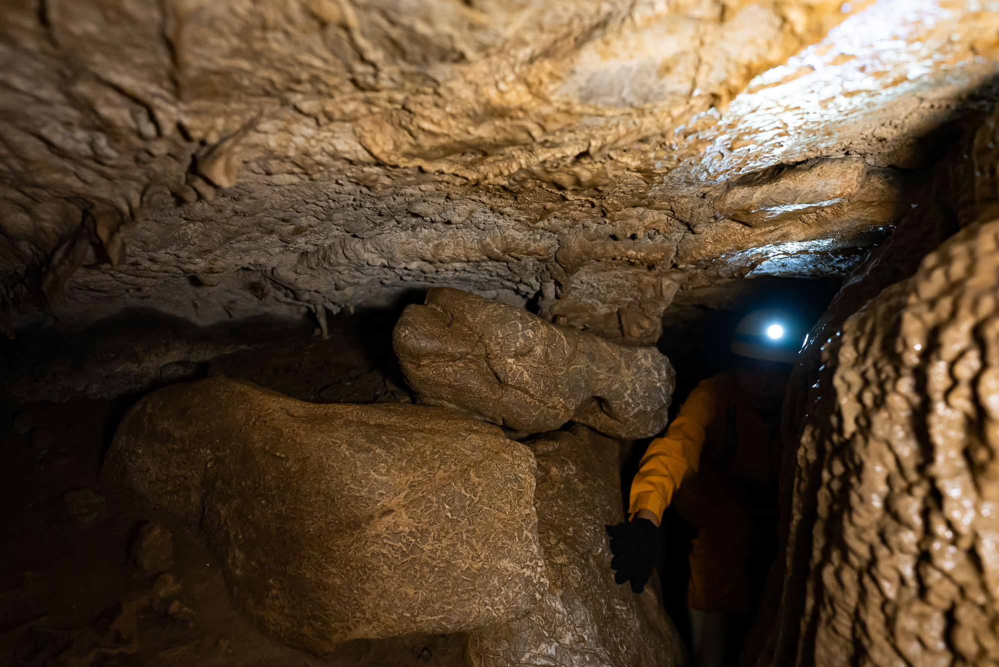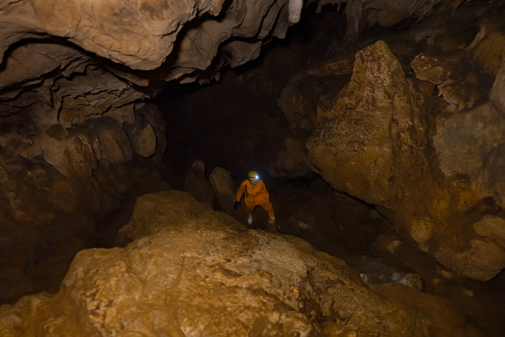 为了在复杂形成的钟乳洞中勇往直前,一边采取各种各样的姿势一边走无路的道路,认真的冒险。