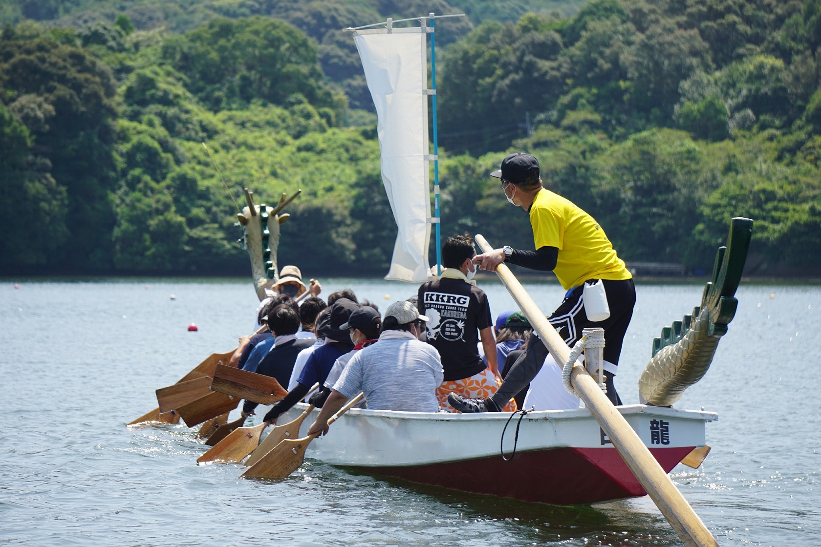 可以向教练请教龙舟的乘坐方法、注意点、享受方法等,和比赛不同,可以在浦之内平静的内海旅行。一边和朋友打招呼一边在海上前进的话,能感受到爽快的心情。