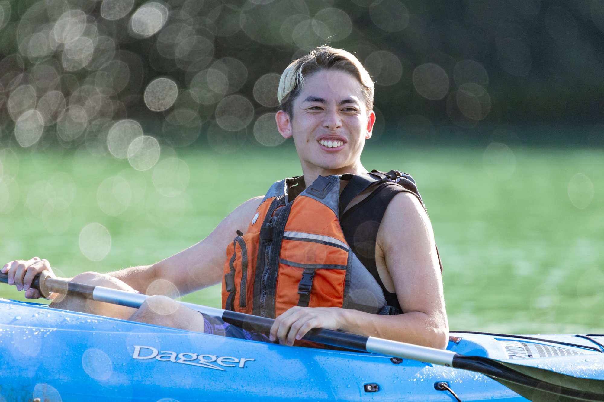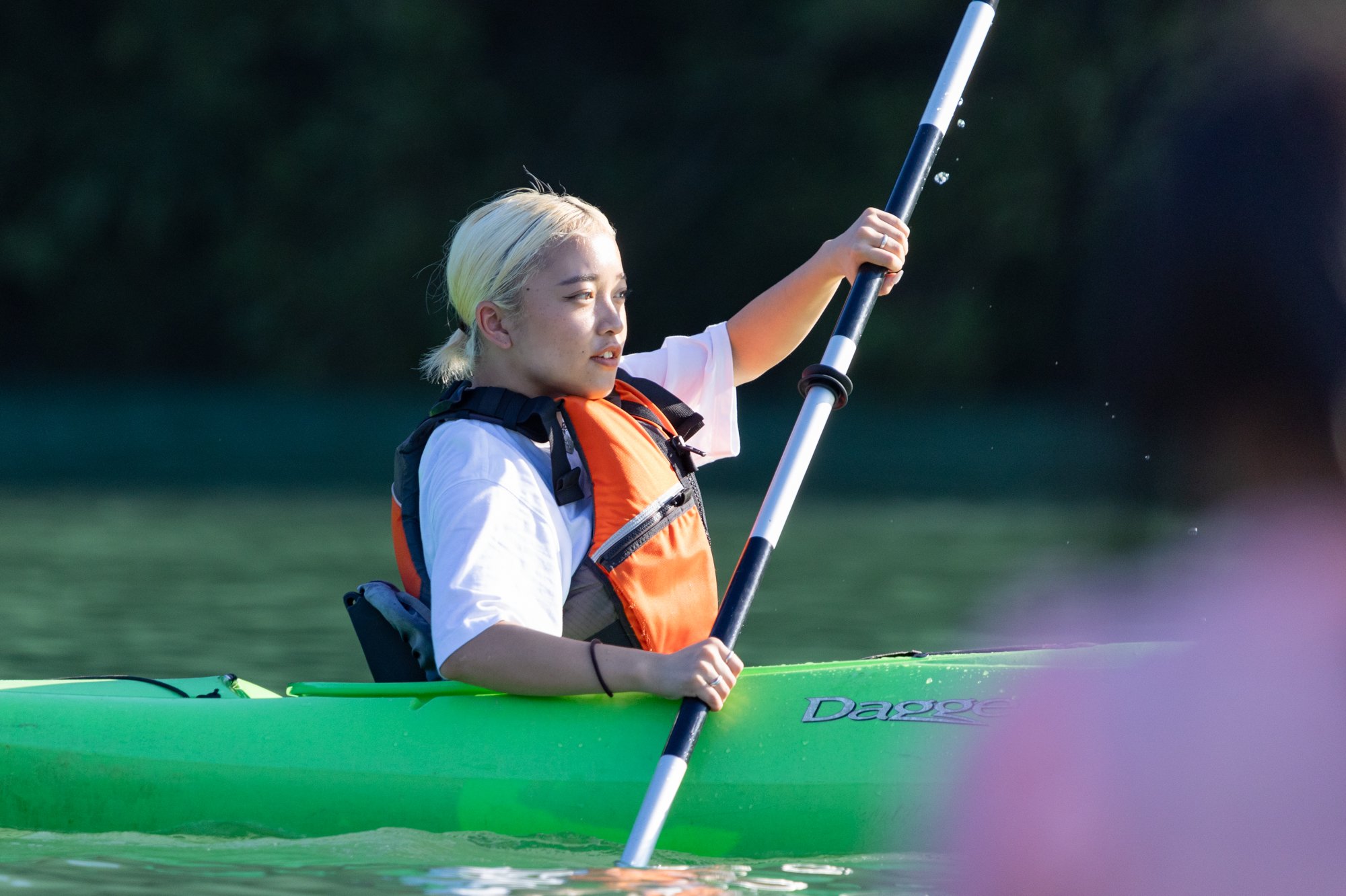 Haruto和AYUMI首次挑战独木舟。马上学会了划法,“好舒服~!”“明天也想做!”看起来非常满足。