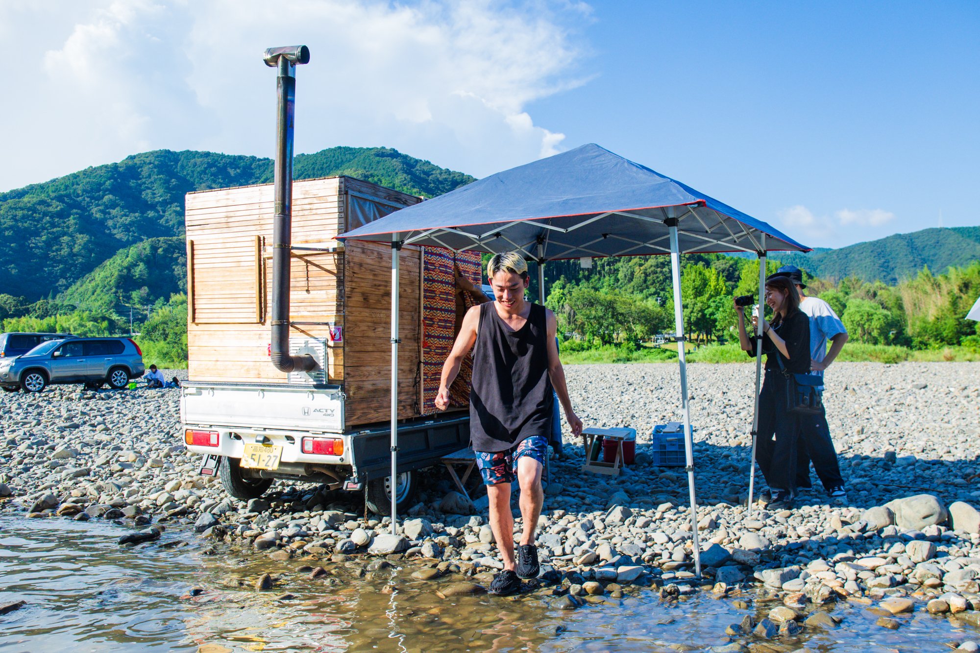 还体验了在河滩开店的轻虎桑拿。“这是一个非常好的桑拿,”Haruto先生说。这里的“四万十轻虎桑拿”基本上每天都在“稻草人”前营业。