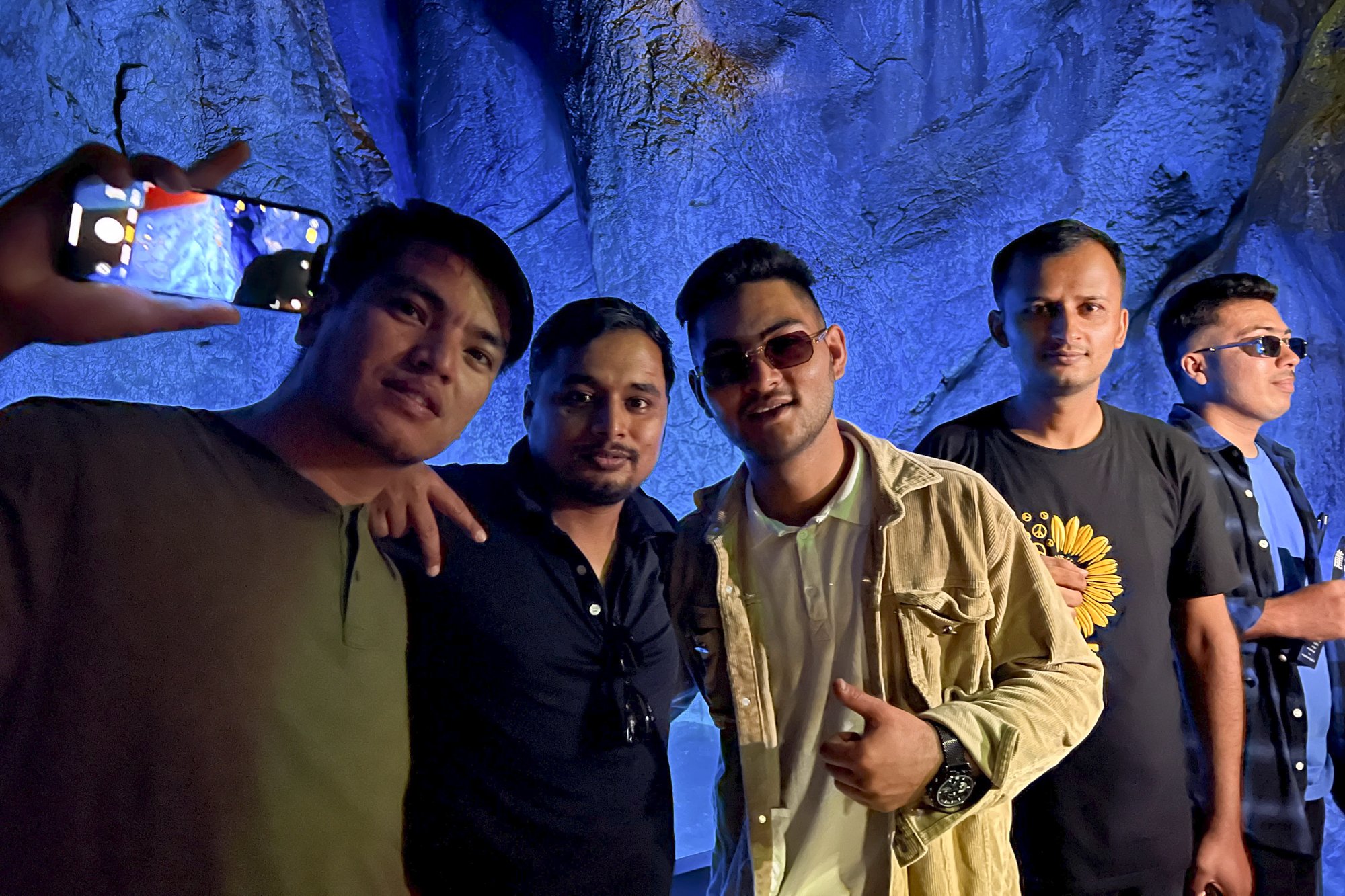 参观后,在洞窟前拍摄母语的信息视频。把感动原封不动地传达给了自己国家的人们。