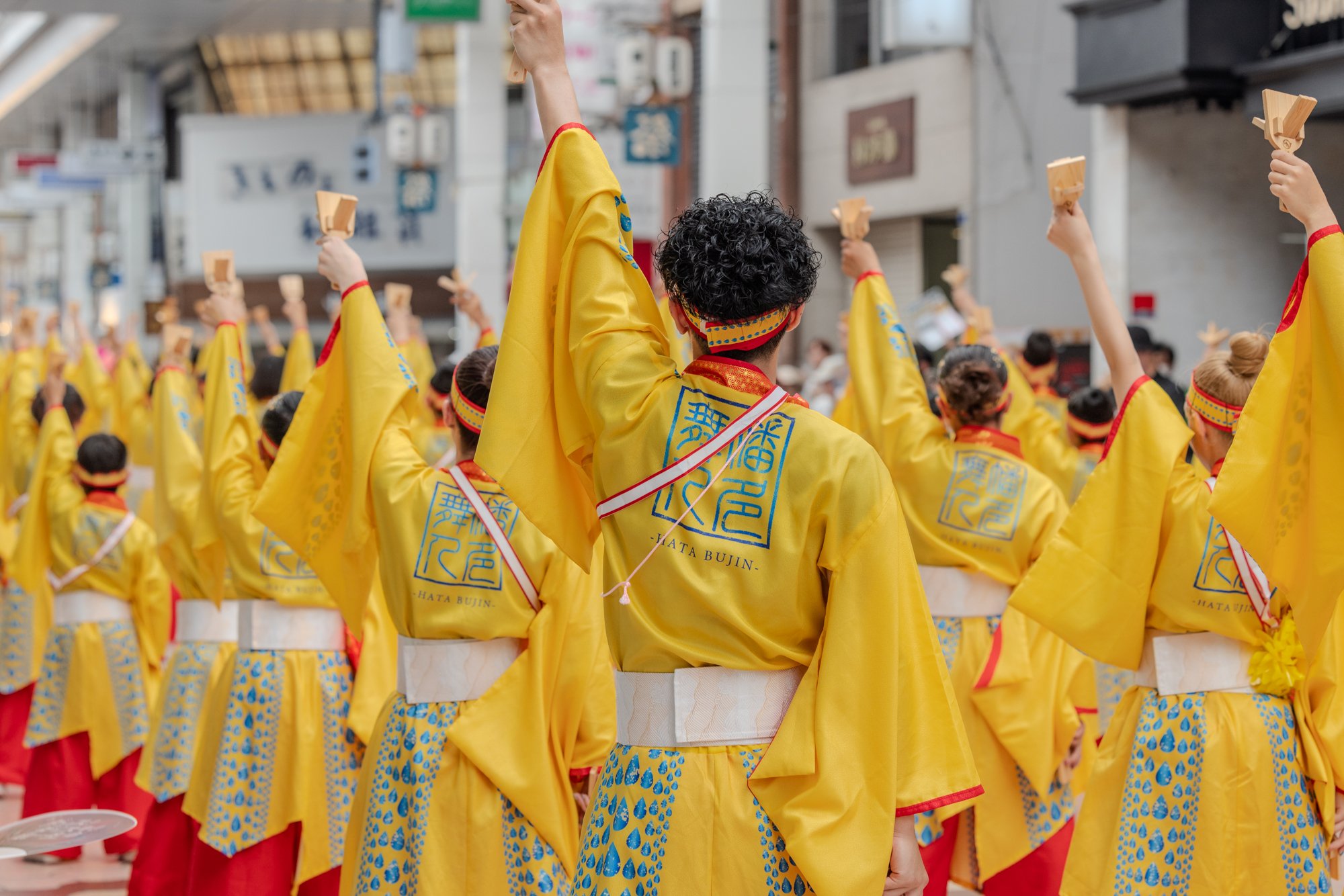 幡多舞人是以当地舞蹈学校为母体的队伍,每年有100人左右的舞女表演充满活力的舞蹈表演。小队的特征是从6岁开始到73岁,各个年龄层的人们团结一致。也参加了当地的庙会和活动,使地区气氛高涨。
