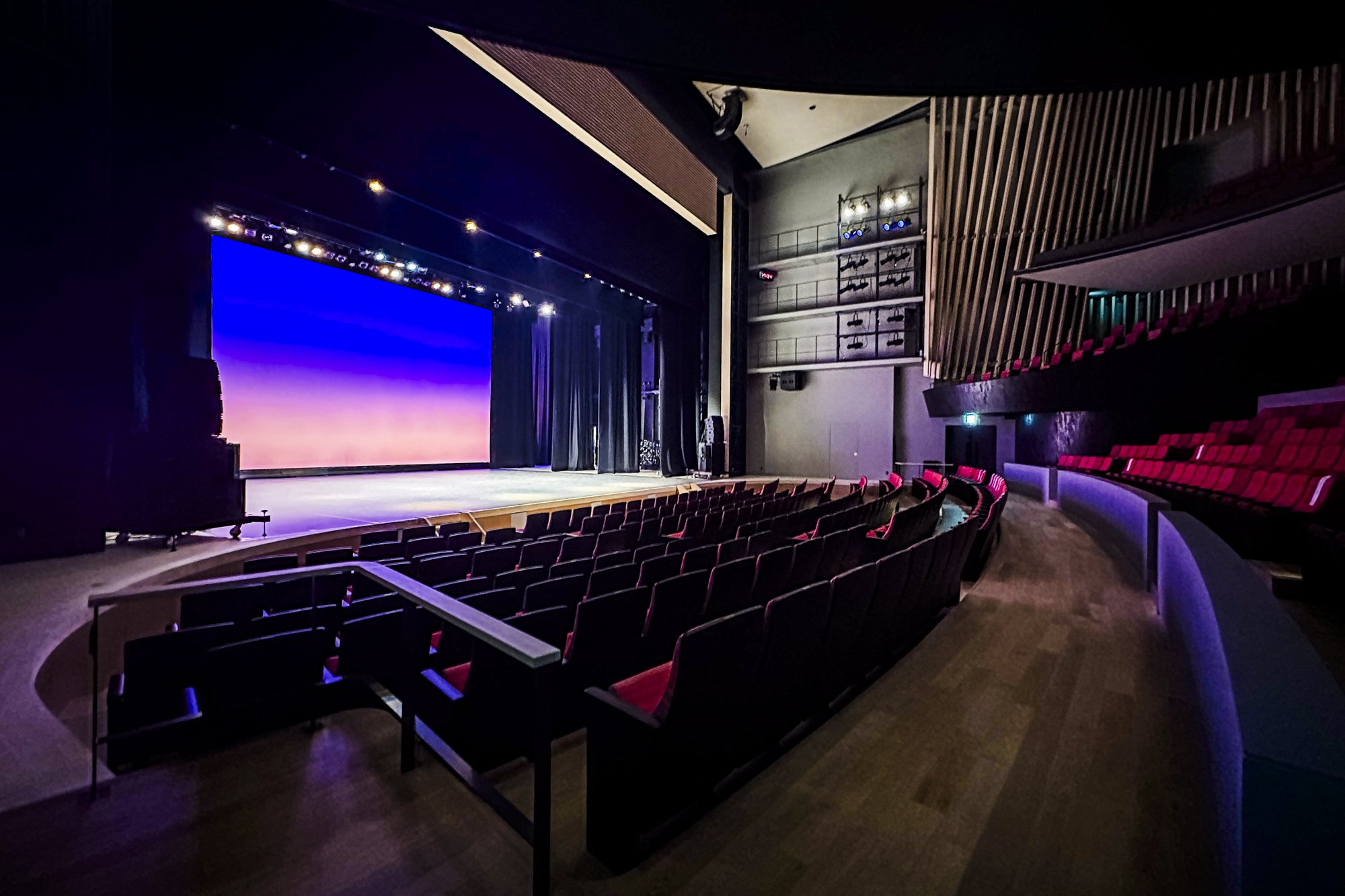 岛和Pia的主要设施“岛和大厅”是有805个观众席的大厅。观众席是围绕舞台的葡萄酒场型,设计成无论哪个座位都能容易看到舞台。此外,还具备了高功能的舞台设备和音响性能,可以进行真正的公演。还设有6个轮椅席和2个多功能室,很多人都可以使用。