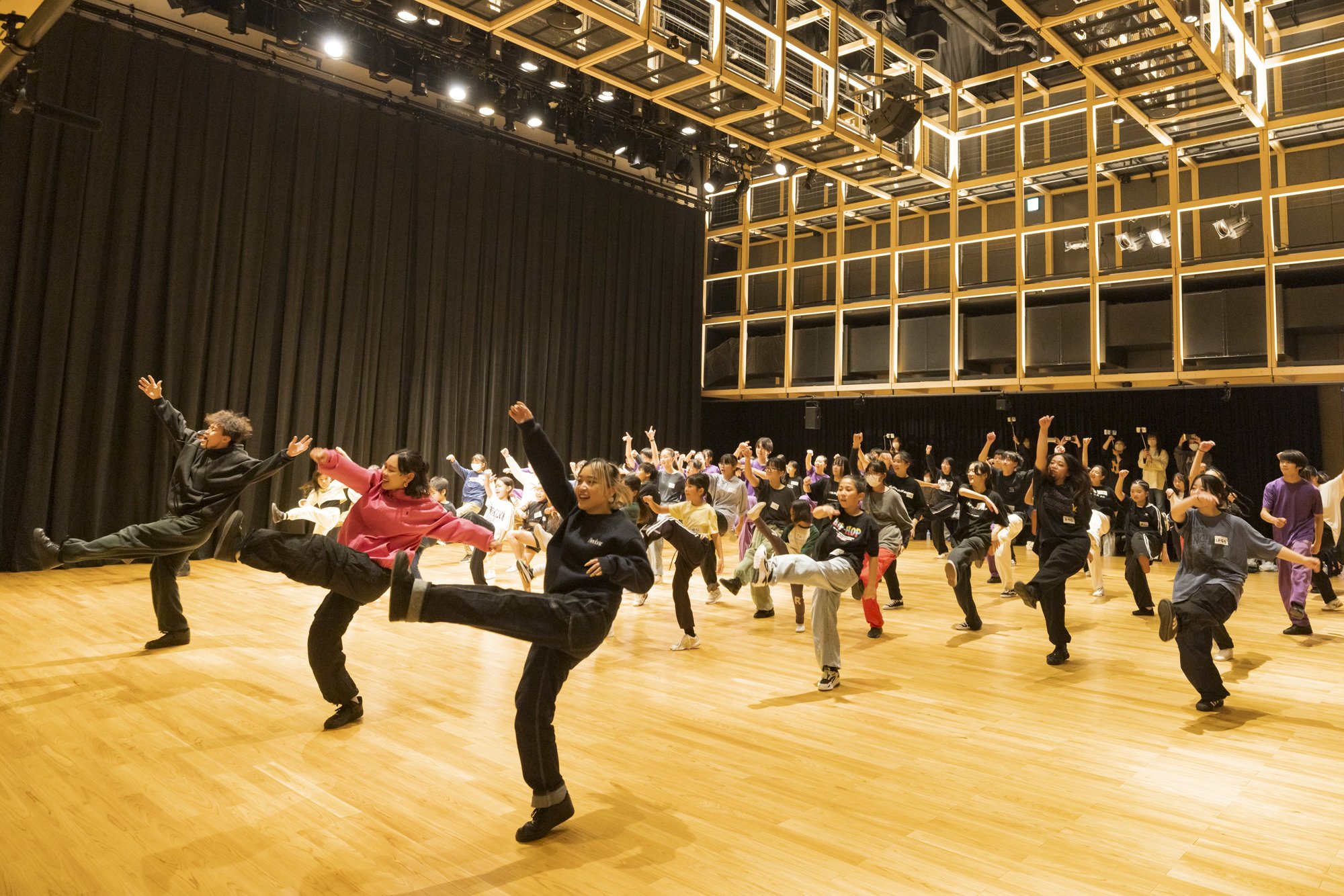 练习时间大约是3个小时,包括小学生在内大家都很集中。虽然时间很短,但是参加者却一下子成长起来,活动当天完美地展示了记住的编舞和造型。