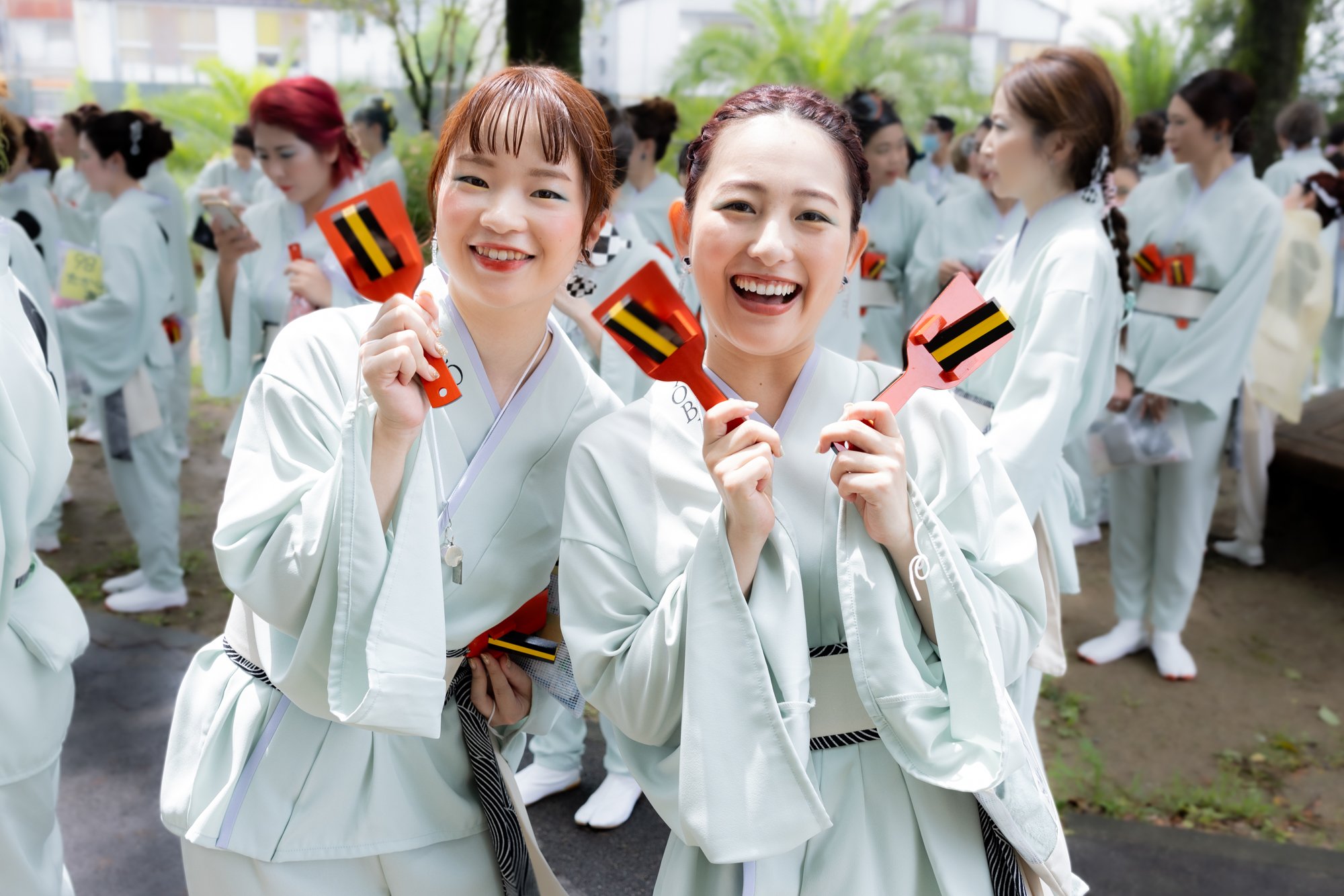 小玉:“练习方面,比起‘辛苦’,‘快乐’更重要。为了YOSAKOI而努力工作的感觉(笑)。第一次参加的时候,一开始身体很累,但是体力增加了,习惯了。正式演出虽然心里七上八下,但是大家都很期待,所以我会努力的!”