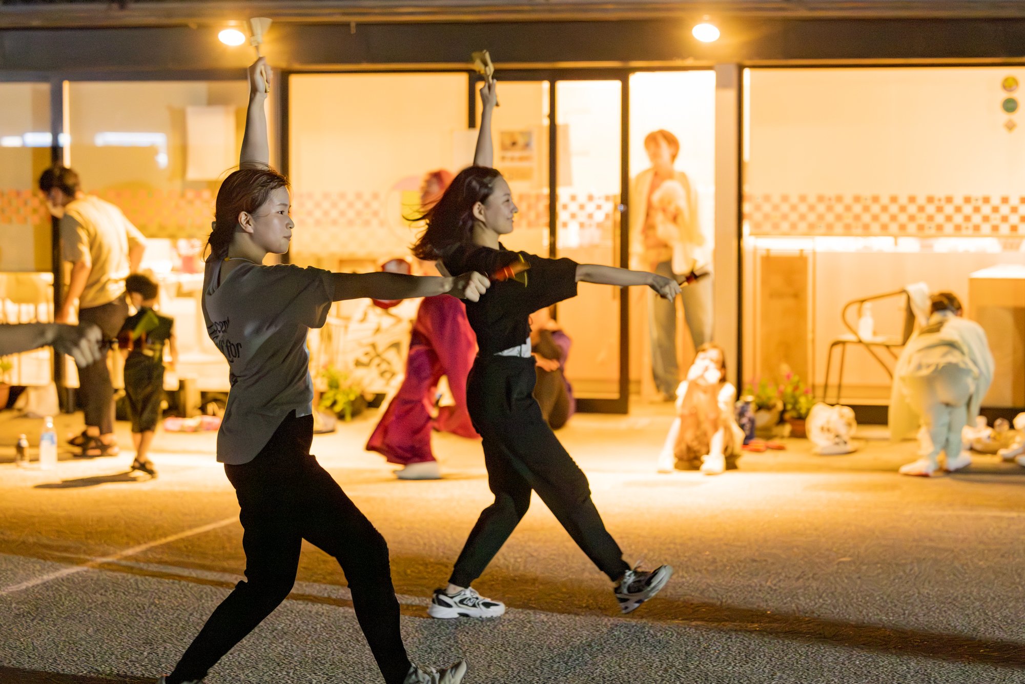 在商店街的拱廊上排队的客人们的守护下,展示练习的成果。两个人都给我们看了神经周到的美丽的舞蹈表演。拱廊里也有“加油~”的口号。