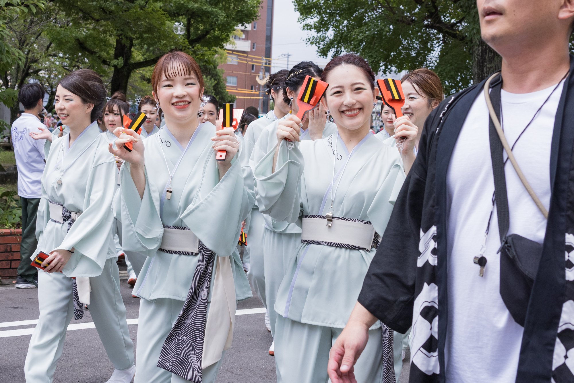 YOSAKOI祭正式开始第2天的11日。和小铃、小玉一起跳完了10号的一天,紧张感似乎消失了。我们的肾上腺素和其他舞女的力量也成为了力量,这一天也全力以赴地享受,向观众传递了笑容。