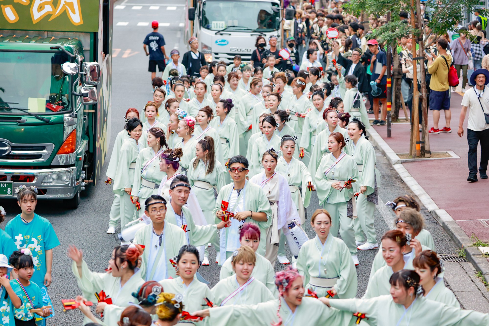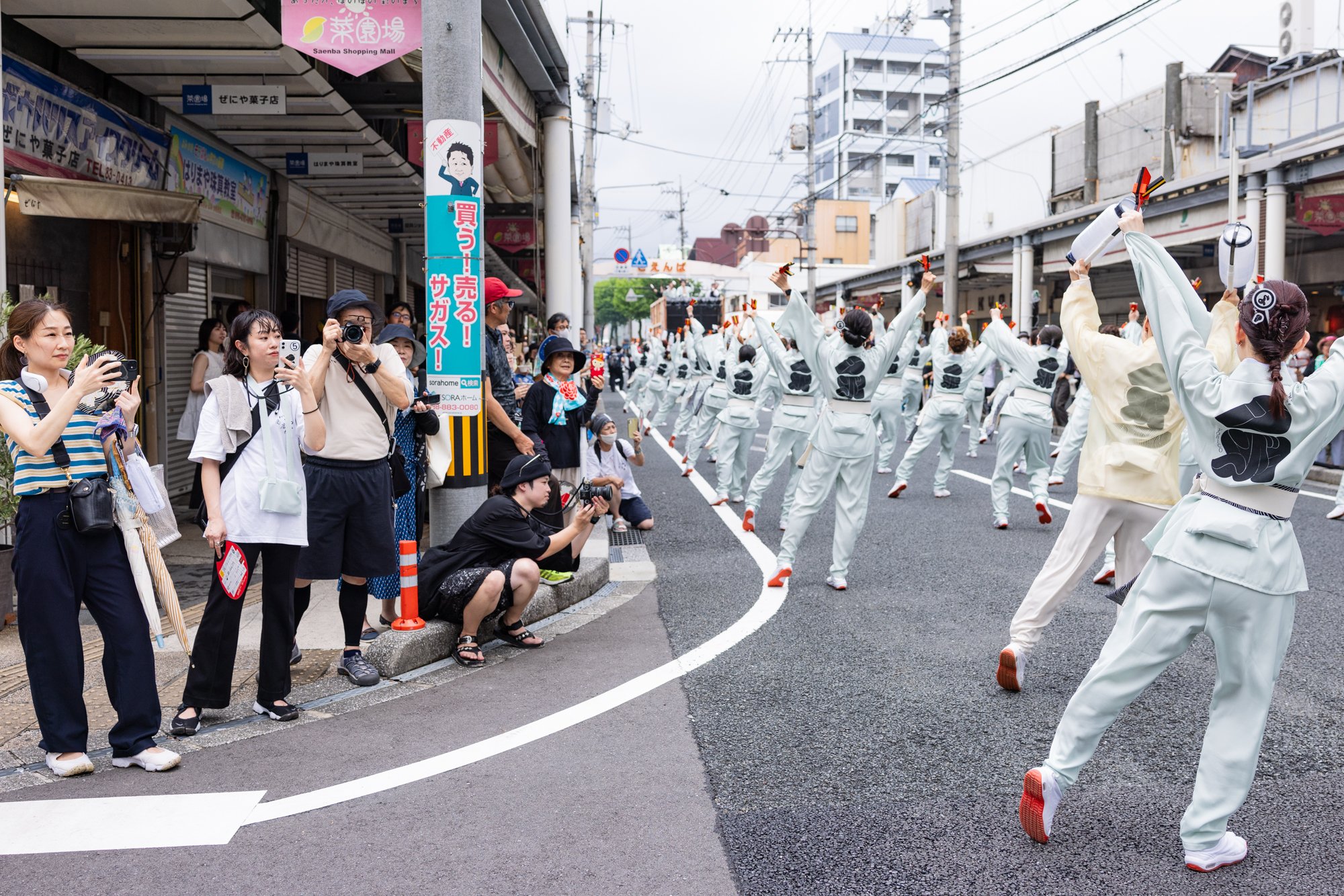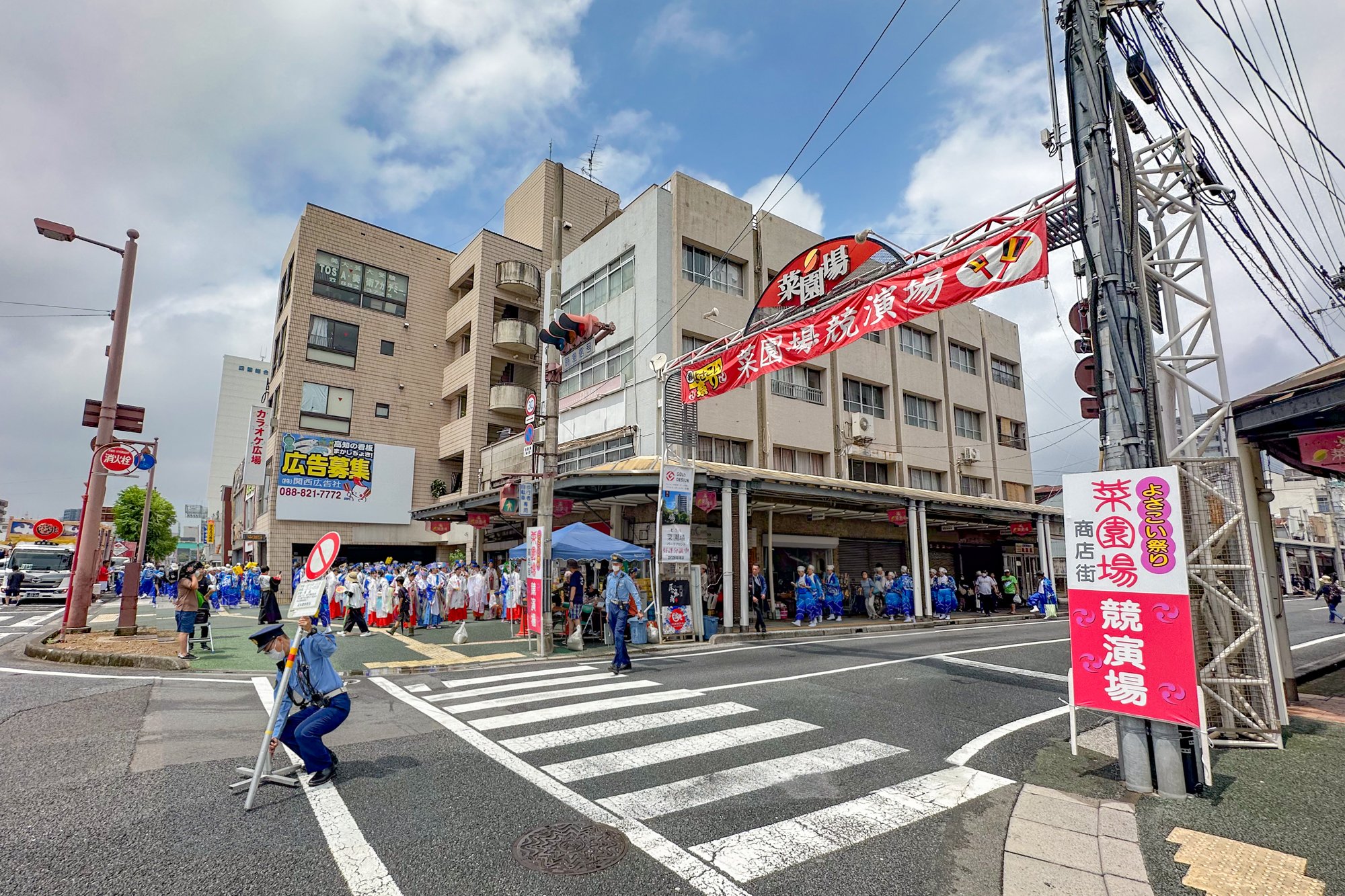 在设置在300米左右的菜园场商店街的菜园场竞演场开始了舞蹈。节日期间,在舞蹈表演场所的道路上禁止车辆通行,表演舞蹈。