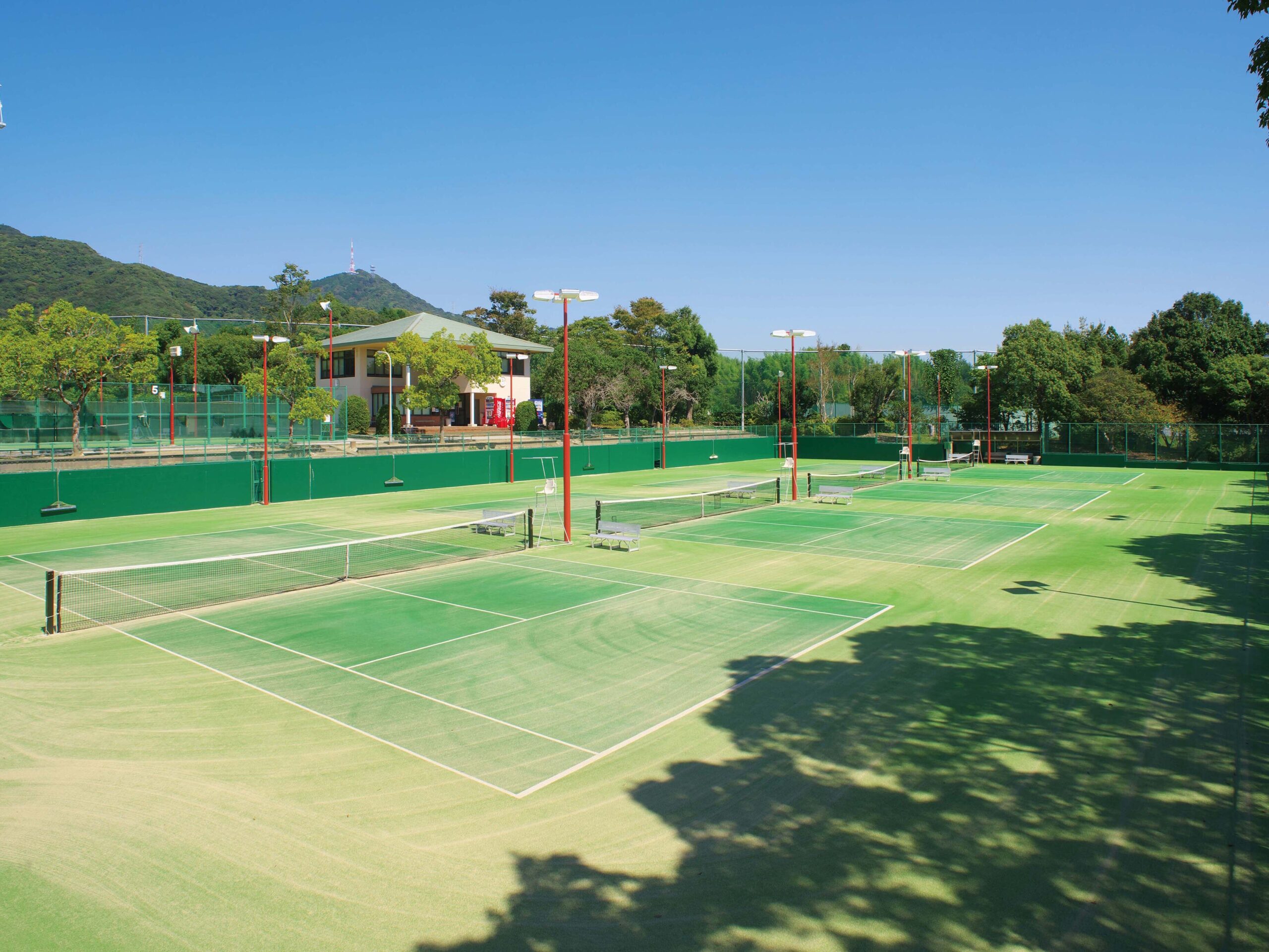 采用全天候型砂人工草坪。软硬式都可以使用,除了16面网球场之外还附带了俱乐部,也可以举办全国大会等大型大会。也有夜间可以使用的大衣,包括普通人在内每天都有很多人使用。