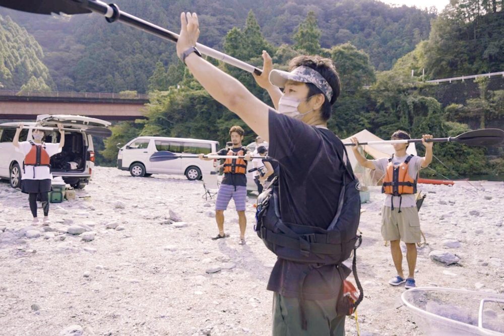 一边欣赏到“仁淀川户外中心”途中的景色,一边到达设施的佐藤一行。体验是在500米左右的区间周游,清水先生说:“从这里到大海!”干劲十足!穿着救生衣,学习了腰包的拿法和皮划艇的划法等之后,下到河原,对眼前广阔的仁淀川的美丽感到兴奋。
