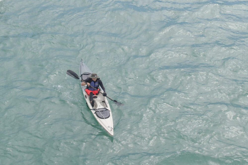 佐藤先生和横竹先生一对、清水先生和夫人一对分别乘坐2人乘坐的皮艇,出发艇。离岸时“哦…”,虽然看起来很紧张,但那不愧是运动员! 一转眼就掌握了诀窍,每个人都开始自由地在水上前进。