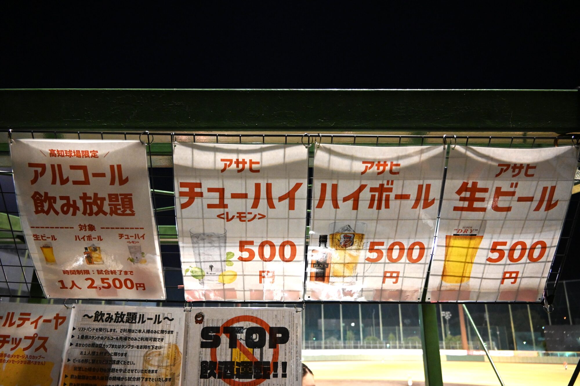 会场里准备了啤酒、高球、高汤三种,一杯500日元,但是2500日元也有随便喝的,所以推荐给想喝很多的人。畅饮可以在比赛结束前尽情享受。