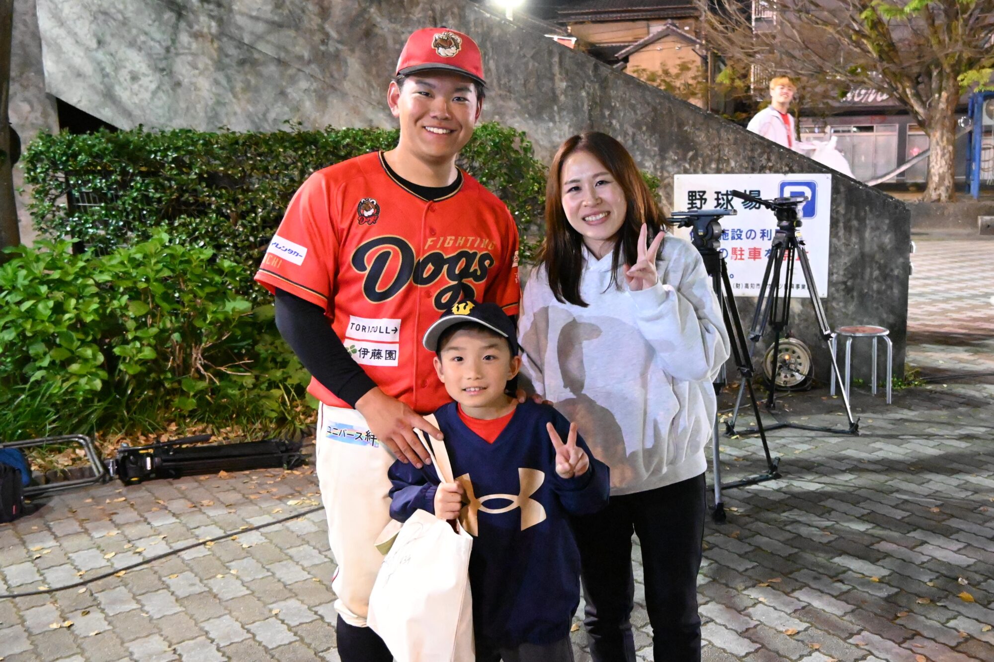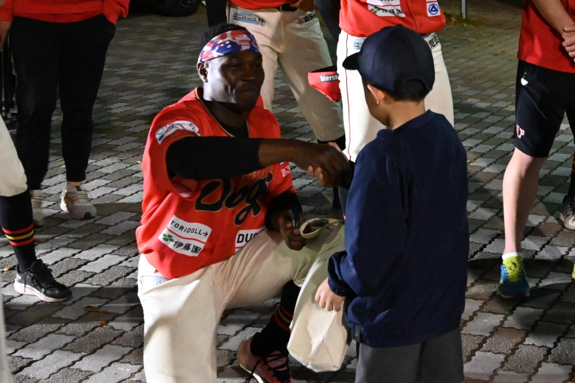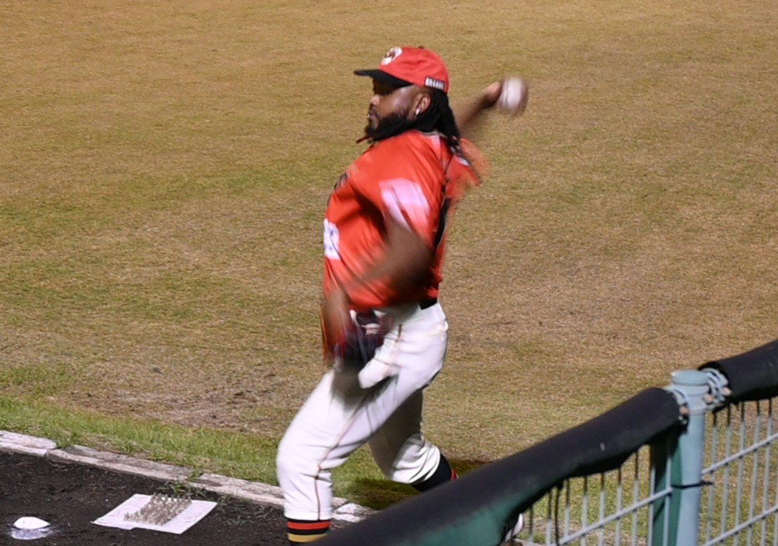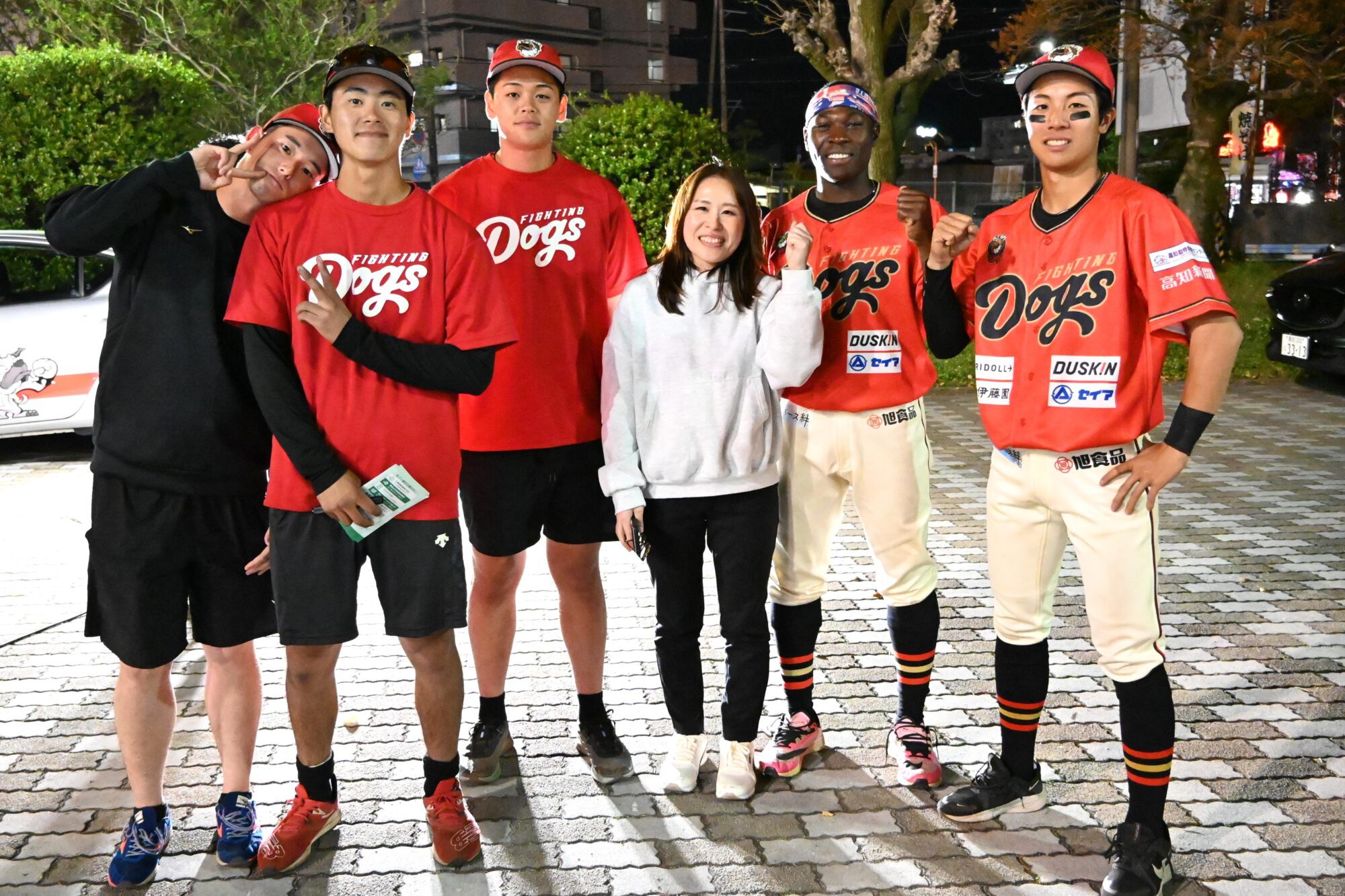 这一天偶然间,曾在原阪神老虎中荣获保卫王的多丽丝·拉斐尔投手在加入Fighting Dogs后首次登场。