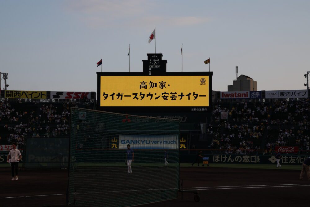 这次,作为去年协定的一环,9月27日,在阪神老虎的根据地阪神甲子园球场举行的常规赛正式比赛(VS中日龙队)中,高知县冠比赛“高知家·老虎镇安艺夜场”举行了。
