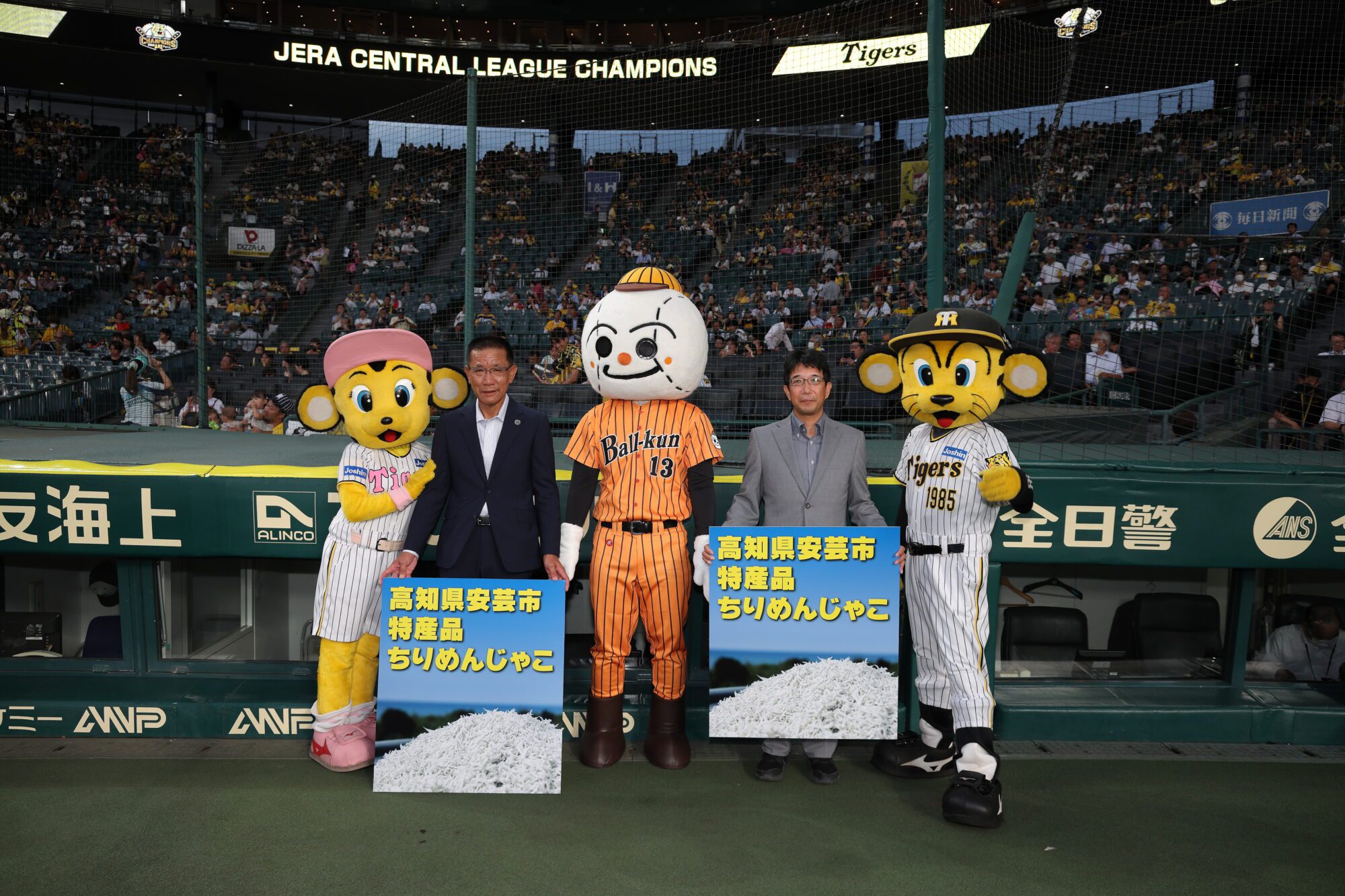 比赛前,高知县和安艺市向阪神老虎和中日龙队两个球队赠送了安艺市特产的小鳀鱼干。