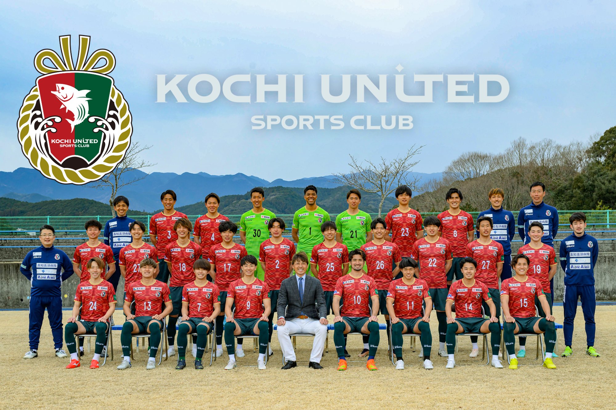 “高知联合SC”是以战后初期创立的“高知农业高中OB俱乐部”为起源的“爱戈索高知”和1998年创立的“高知U Traster FC”这两个社会人足球俱乐部,以“在高知县诞生J联赛加盟俱乐部”为目的而合并成立的以高知县为根据地的足球俱乐部。团队标志是由强有力的黑潮怒涛和横纲周围环绕的鸣子主题上跳跃的鲣鱼组合而成的高知特色设计。
