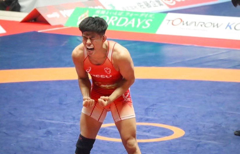 清冈幸大郎选手出场“男子自由式摔跤65公斤级”