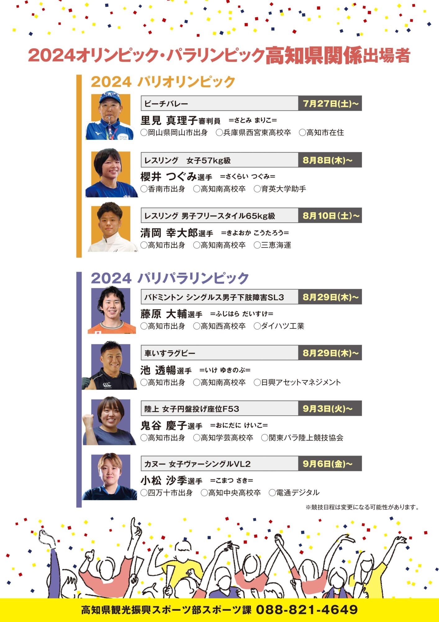 除此之外,参加2024奥运会和残奥会的高知县相关人员也有很多,请务必给予支持。